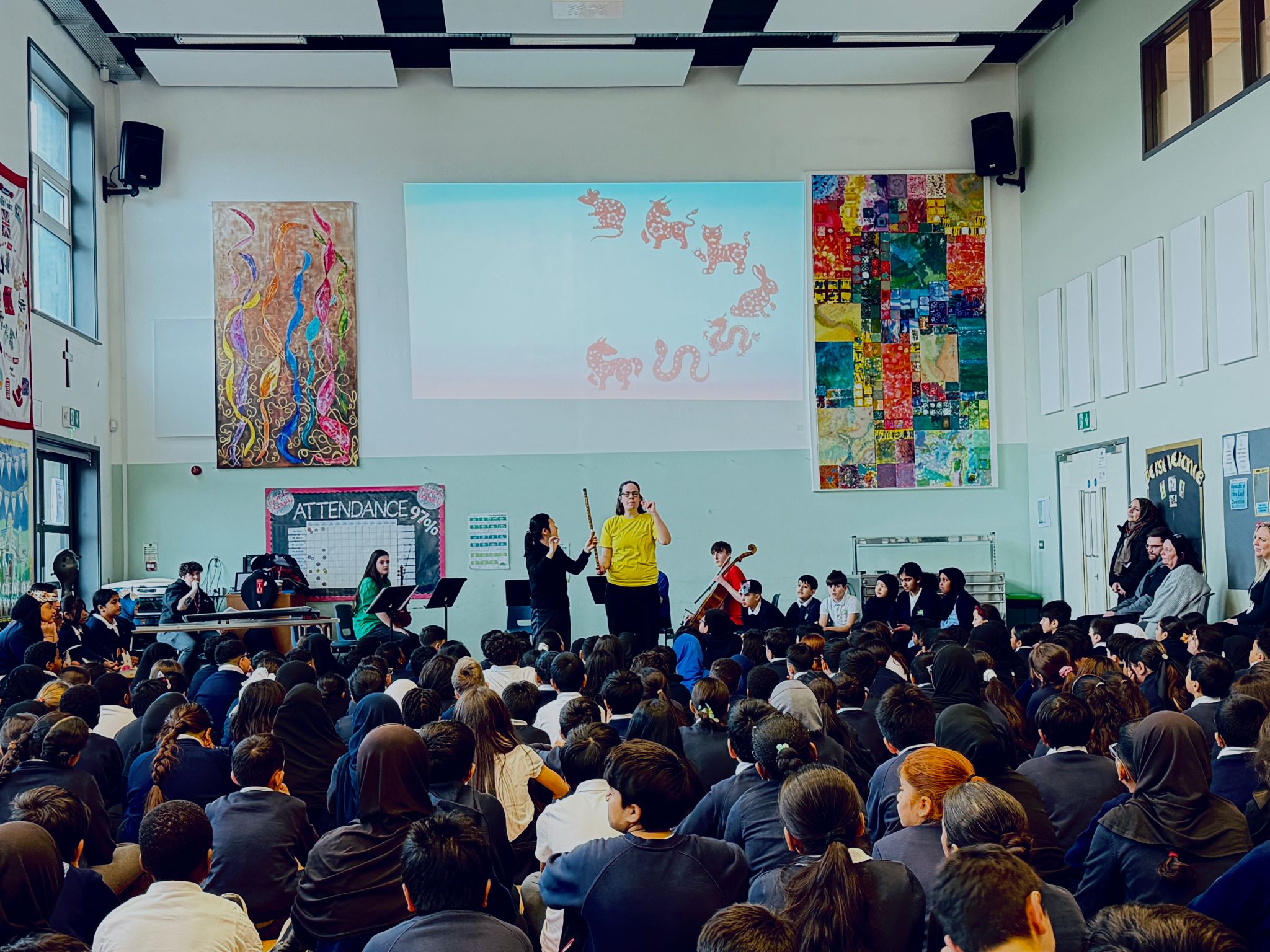 活动由音乐孔子课堂中方教师、中央音乐学院姜谧娅副教授和英国独立艺术家、长笛演奏家Sarah Atter共同主持。奇瑟姆基督教小学校长Rachel Bruno、圣菲利普基督教小学副校长Southern 、切特姆音乐学校创意部主任Vicki Ciaputa,及两校师生共500余人共同参与。
