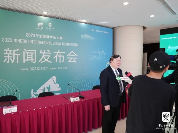 4月18日下午2时,2023宁波国际声乐比赛新闻发布会在中央音乐学院歌剧音乐厅隆重举办。比赛组委会主席和艺术总监、中央音乐学院校长俞峰,宁波市政府副秘书长陈顶祥和中央音乐学院声乐歌剧系党总支书记陈冰先后致辞。宁波市文化广电旅游局副局长江武吉,宁波交响乐团团长童铭,中央音乐学院院长办公室主任、宣传部副部长王歆,中央音乐学院演出实践管理中心主任、北京央音演艺有限公司董事长李应泰等出席。发布会由中央音乐学院国际交流处处长陶倩主持。人民日报、新华社、中央广播电视总台、中国新闻社、中国日报、中国文化报、人民音乐、音乐周报、北京电视台、北京青年报、国际在线、中国网、新浪网等二十多家媒体记者参加了发布会。