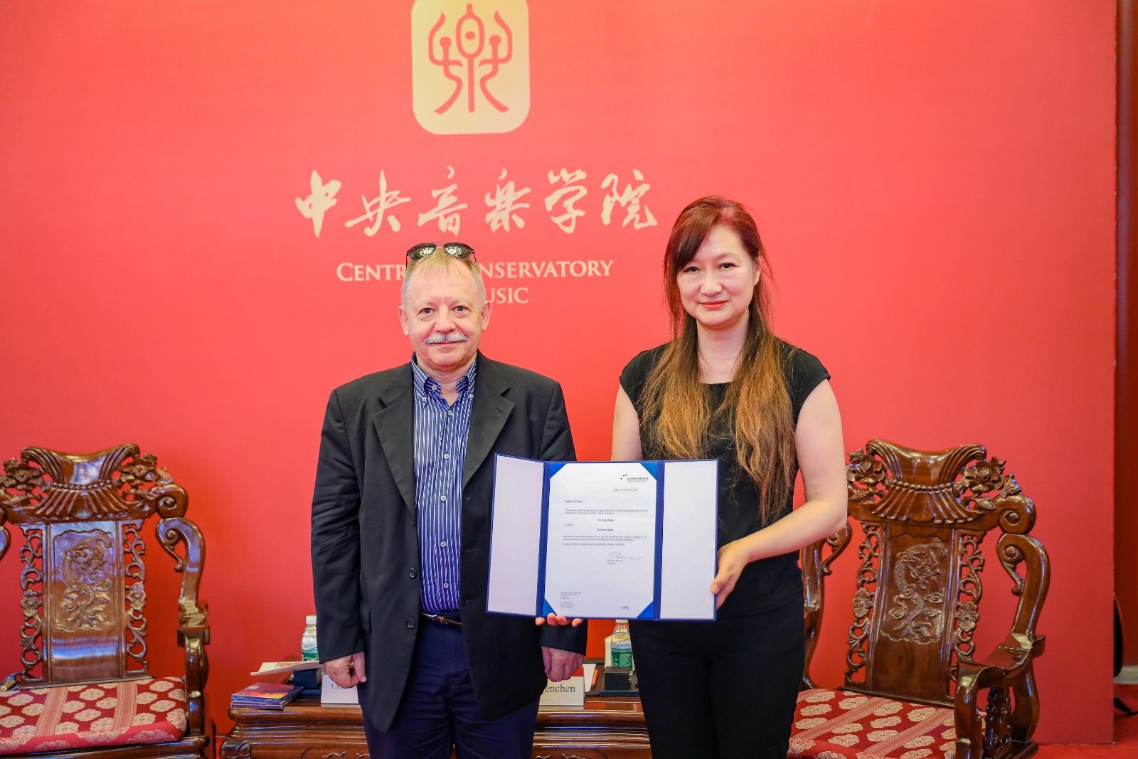 2025年9月26日,瑞士卢加诺音乐学院院长克里斯多夫·布雷纳教授(Christoph Brenner)和外事及亚洲事务代表徐震先生来到我校参观访问。秦文琛副校长在南大殿与其进行了亲切的会谈。我校指挥系系主任陈琳教授、管弦系打击乐专业张景丽教授、国际交流处处长陶倩陪同会谈。