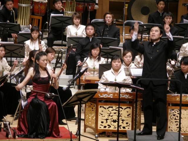 12月9日晚7点半,中央音乐学院中国青年民族乐团在北京音乐厅演出了大型民族协奏曲专场音乐会“龙魂华韵”。这与12月17日晚七点半,即将在中央音乐学院音乐厅上演的大型民族协奏曲音乐会“《春秋》、《神曲》、《唤凤》、《图腾》”堪称是中央音乐学院院庆55周年系列音乐会中大型民族器乐协奏作品类的姐妹篇。“龙魂华韵”中共四部作品,分别是史付红的打击乐协奏曲《对话》、郭文景的竹笛协奏曲《愁空山》、谭盾的胡琴协奏曲《火祭》、刘长远的琵琶协奏曲《戏弹》。