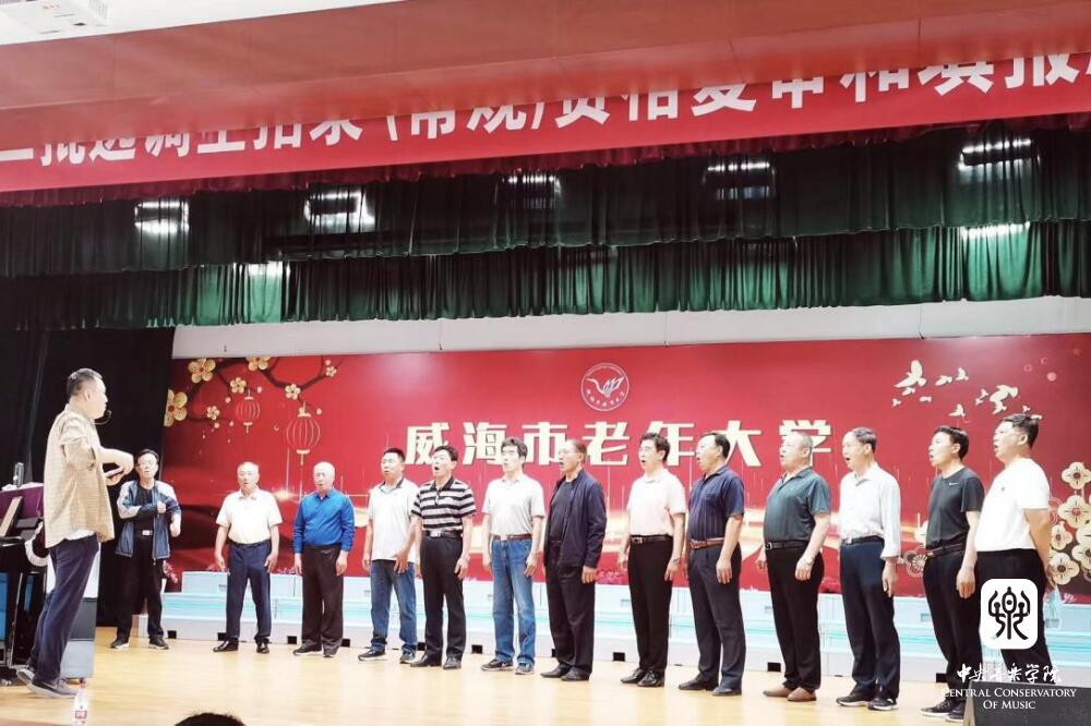 5月27日至29日,中央音乐学院合唱团六名骨干成员(黄文卿、刘海月、刘斯强、王翀、张括、赵司琴)先后赴威海市环翠区发改局、威海音协爱乐合唱团、天翔社区军嫂爱心团、环翠区环境卫生服务中心、威海市老年大学合唱团、威海市工信局合唱团、环翠区嵩山向阳社区街道合唱团、环翠区嵩山华夏社区街道合唱团、邹树君合唱团、威海市商业银行合唱团、张村镇皂南台社区股份经济合作社合唱团等20多支基层合唱团体开展了艺术指导课程。各团队相关领导、负责人全程陪同。