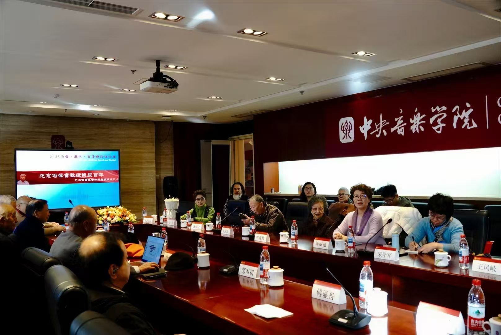 原我校医务室主任、老干部处处长侯凤山、科研处处长王凤岐、行政处处长聂圣武、北京市艺术研究所研究员傅显舟等人回顾了冯葆富在学科建设、研究生培养制度推进、扶植后人等方面所起到的重要作用。冯先生60岁入党,晚年仍坚持科研与临床的执着精神,以及他与声乐大师沈湘合作培养跨学科人才的创举,被多位发言者称为“小课题做成了大文章”的典范;中国戏曲学院医务室姜永梅医生依托校史脉络,追述了冯老在“国戏”嗓音医学领域的学术足迹;著名录音师沈援之以晚辈视角,回顾了冯老与其父沈湘教授对专业充满热爱、对未知充满好奇、不断探索、密切协作的学术情谊;作为冯老早年弟子,97岁的原中国歌剧舞剧院医务室嗓音防治室主任刘运墀老先生,亲临会场回顾了追随先生学习与工作的历程,彰显其勤于钻研、注重学习与实践的治学精神;98岁高龄的著名声乐教育家郭淑珍教授通过视频采访的形式,讲述了冯先生对艺术嗓音诊疗格外专注,懂声乐艺术特殊性,并贴合艺术需求的方式治病救人的往昔岁月。