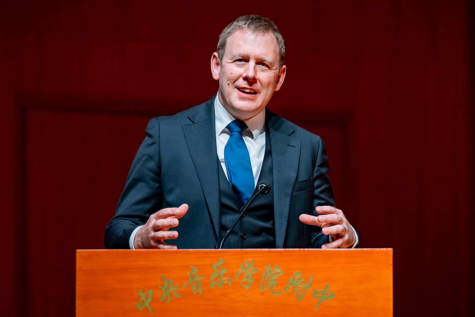 11月28日晚,本届音乐周的压轴活动——“中英联合音乐会暨中英青少年作曲交流展演优秀作品首演”在中央音乐学院附中音乐厅隆重举办,音乐孔子课堂中方负责人郐毅主持。中央音乐学院附属中学校长张帅、音乐孔子学院办公室及基地主任樊薇、切特姆音乐学校校长汤姆·雷蒙德分别致辞,一致肯定音乐周活动对促进中英专业音乐教育交流、培育跨文化音乐创演人才等诸多方面的积极作用。