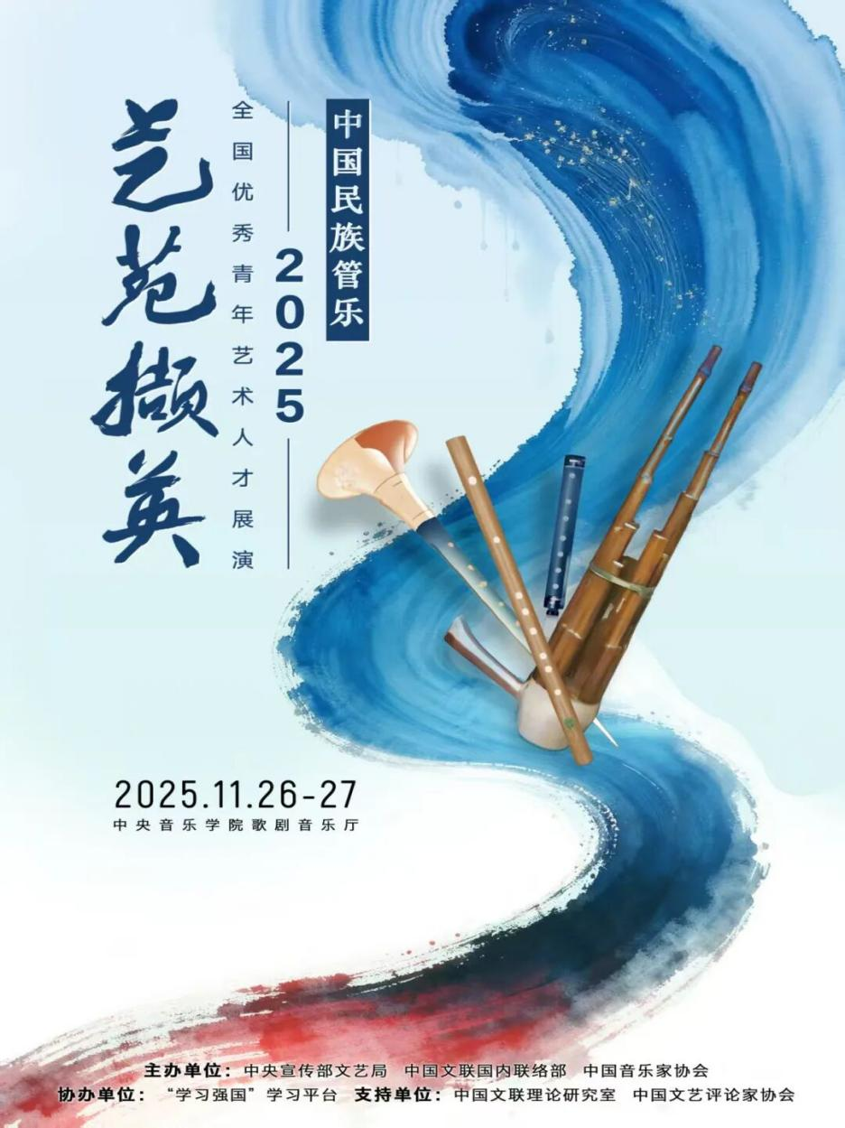 “艺苑撷英”—2025全国优秀青年中国民族管乐演奏人才展演活动7月启动,设置竹笛组、唢呐组、笙组、管子与少数民族乐器组4个组别,吸引全国11所音乐学院、中央直属文艺院团等单位推荐的150位青年演奏人才参与,经过两轮严格评审,最终仅有16人脱颖而出。作为深入贯彻落实党的二十大和二十届四中全会精神,认真学习践行习近平文化思想的重要文艺实践活动,此次展演旨在造就一批有影响的各领域文艺领军人物、建设一支宏大的文艺人才队伍,集中展示新时代中国民族管乐发展水平和人才培养成果。