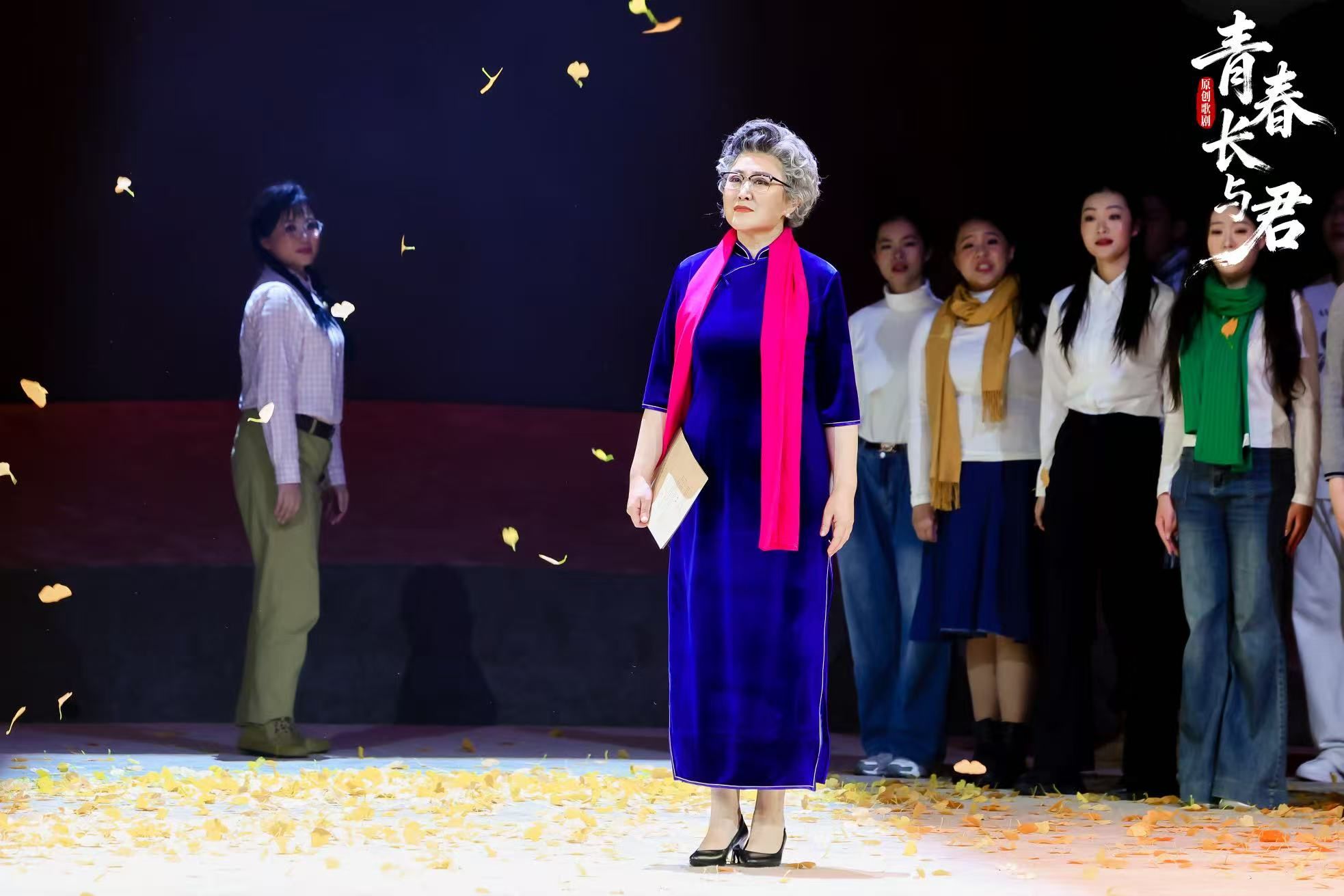 12月10日晚,由中央音乐学院作为实施主体的国家艺术基金资助的大型舞台剧项目原创歌剧《青春长与君》成功首演。在热烈的欢呼和掌声中,金黄色的银杏铺满舞台,一位神采奕奕的先生在主演“荟琳”的搀扶下缓缓走向舞台中央,全场观众自动起立,向这位杏坛长者致敬。她是从战场归来的英雄,却始终坚守着对教育的热爱,用青春热血捍卫中华优秀传统文化;她是“人民功臣”“全国三八红旗手标兵”、全国“最美巾帼奋斗者”,92岁高龄却依旧坚守在三尺讲坛……她就是剧中主人公“荟琳”的原型——北京师范大学资深教授黄会林先生。