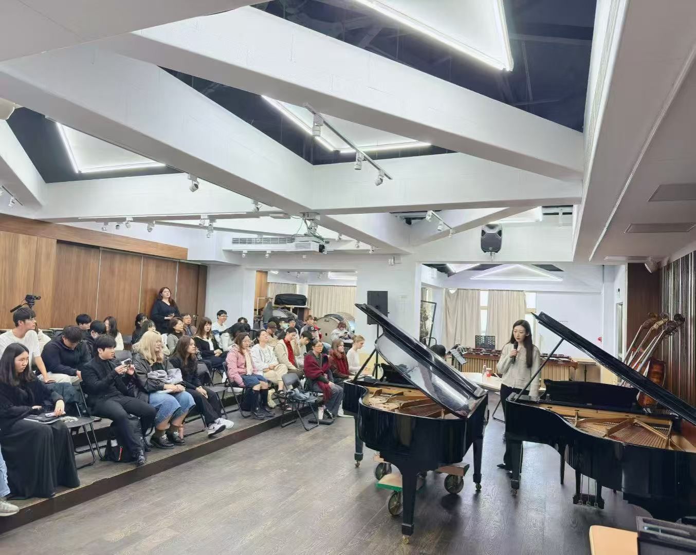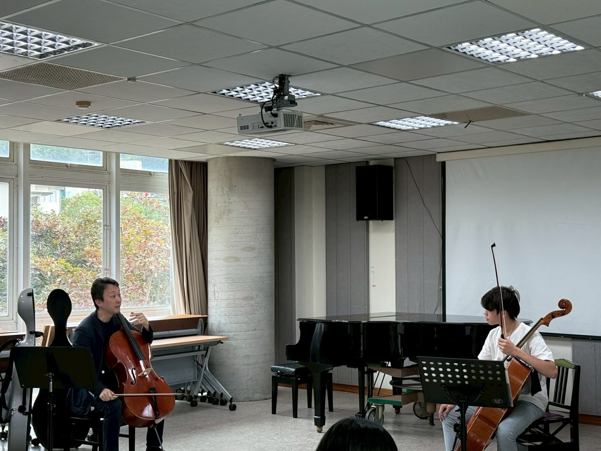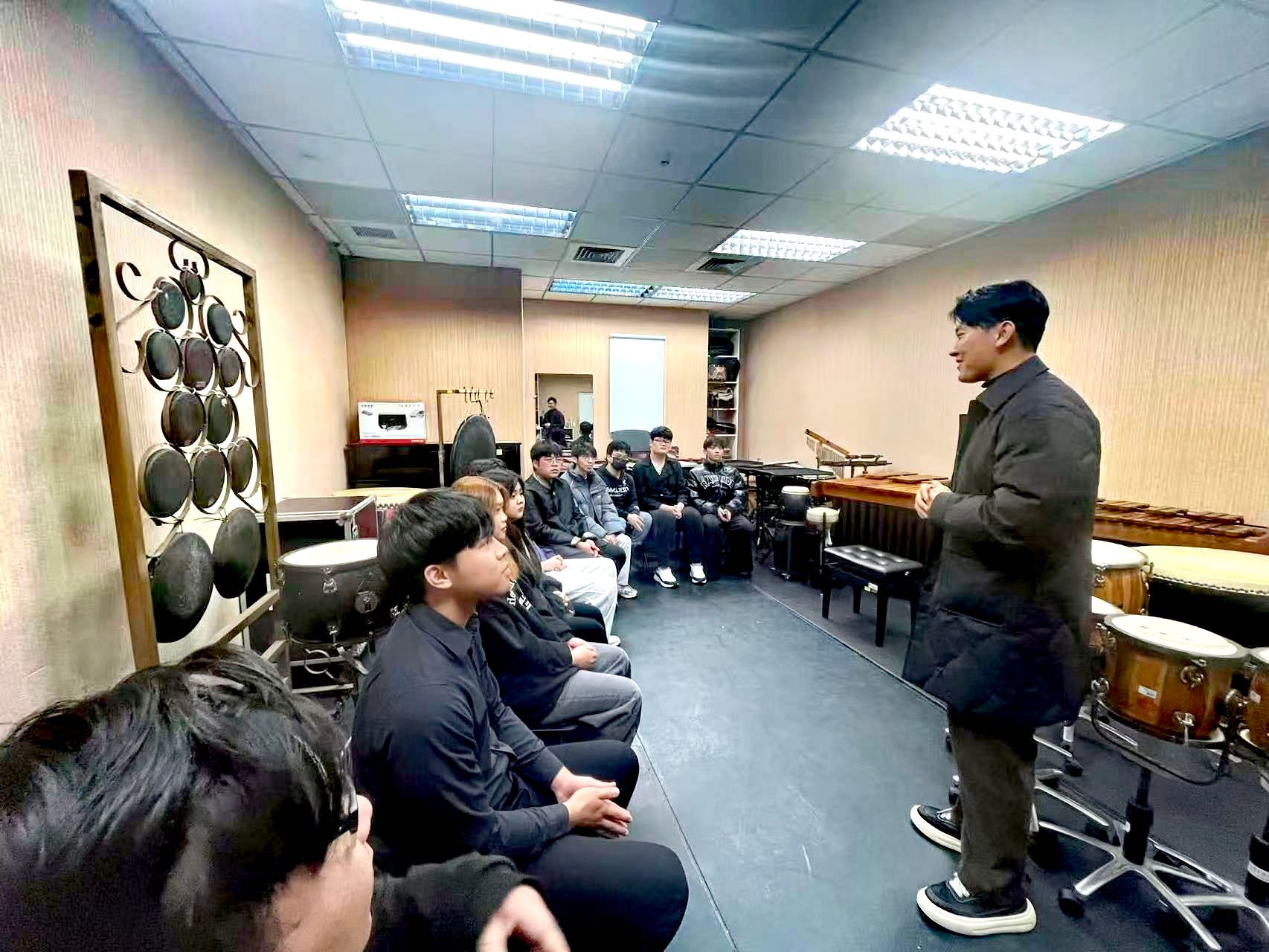 当天下午,在开展古筝、二胡、竹笛、琵琶和打击乐专业大师班的同时,管弦系小提琴教授陈曦、大提琴教授朱牧、声歌系主任谢天教授、青年教师张怡为同学们进行了深入讲解与示范教学,分享丰富的演奏经验与艺术观点,使师生在技术与音乐诠释上获益良多,现场互动热络、学习气氛温馨而专注。系列丰富的学术交流活动,为校园注入浓厚的艺术氛围。
