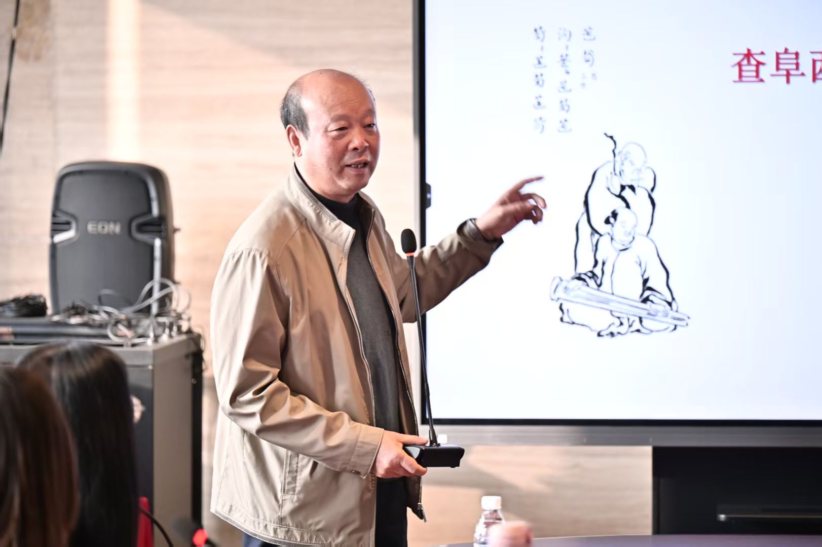 王建欣教授与章华英教授作为特邀主讲人,以学术分享的形式,贯通琴曲创作背景、演奏者的传承渊源与查阜西先生的琴学关联。王建欣教授聚焦《古怨》《长门怨》《暗香》三首作品,从文献考据与音乐形态等多重维度展开层层剖析。他结合姜夔的生平境遇,剖析了《古怨》的旁谱标注特征与宋代美学的内在关联。讲解《长门怨》,他梳理了查阜西先生从1935至1936年间据《梅庵琴谱》打谱的历史背景与曲目历史典故、梅庵琴派的传承脉络。琴箫合奏《暗香》的讲述,则延伸到查阜西先生身着长衫、于梅花树下弹琴的一张照片。照片上有查先生手书的朱权诗句“弹到梅花月满琴”,诗韵与曲境浑然相契。