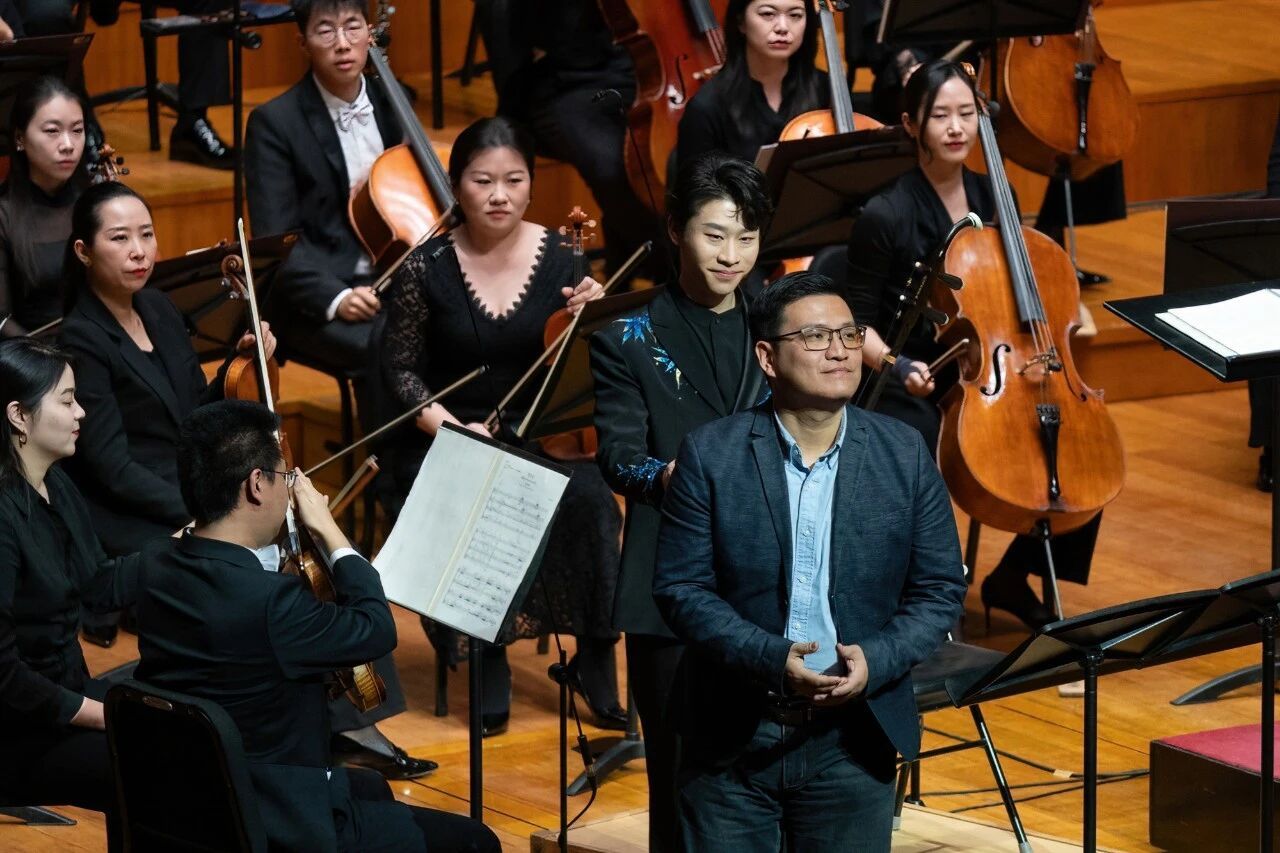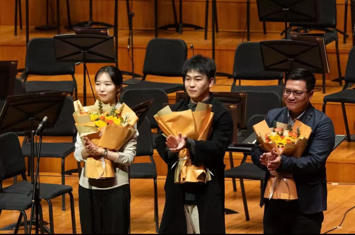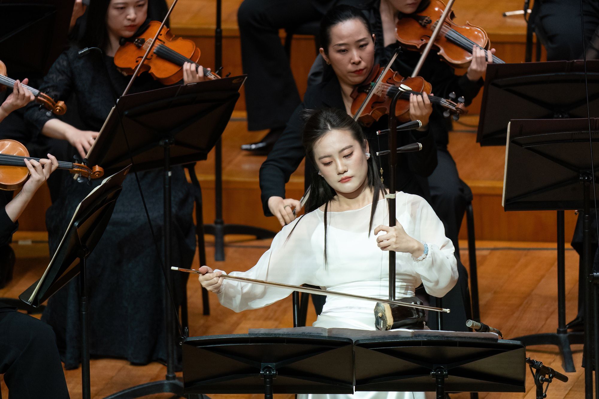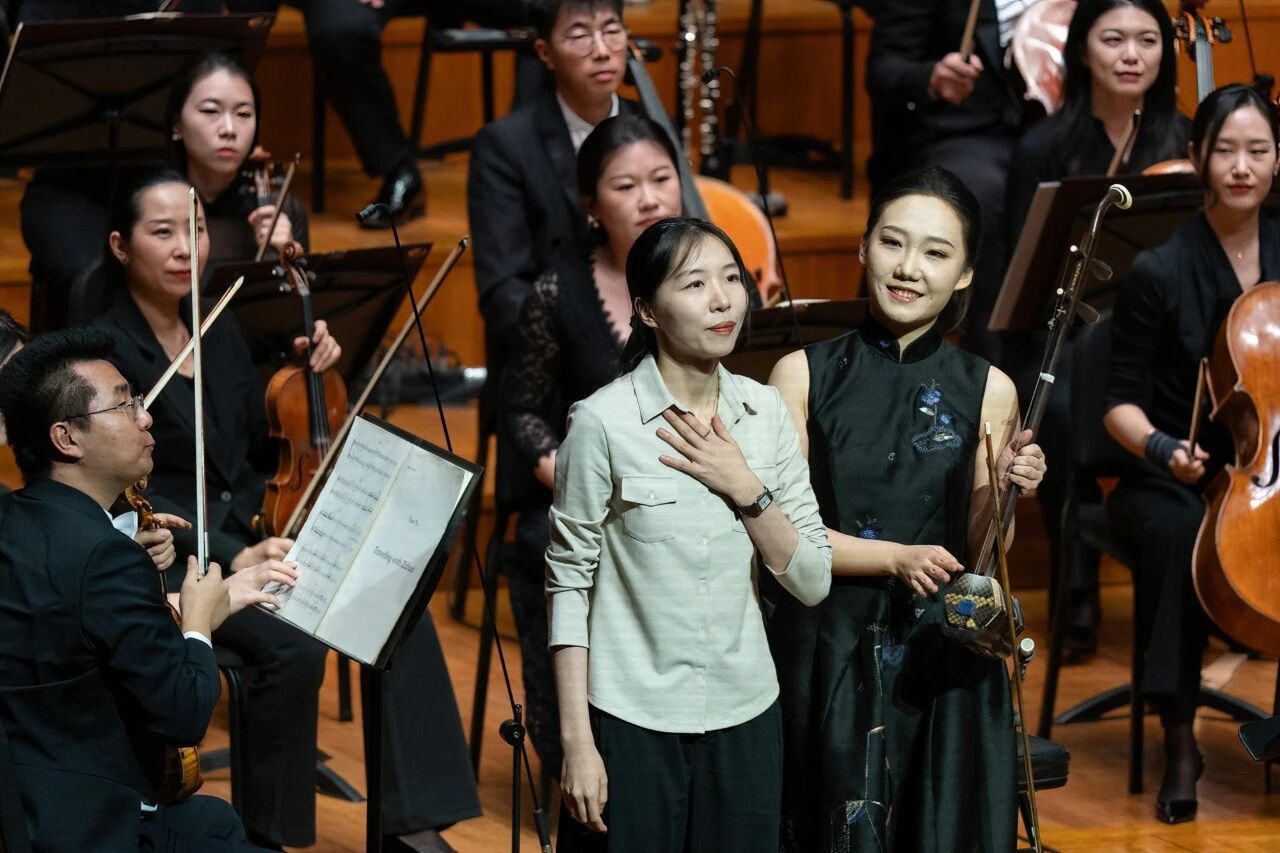 值得一提的是,担任本场音乐会二胡独奏的是我校民乐系教师高白、章海玥,民乐系在读硕士研究生毕友恒(指导教师:于红梅教授)。其中,我校民乐系教师、二胡演奏家高白在《哭笑鸟》《与子瞻同游》两部作品中担任独奏,高白以其细腻、深刻的音乐表达、出色的舞台掌控力与艺术表现力,荣获本场由国家大剧院管弦乐团乐手投票选出的“乐手最喜爱独奏”。三位演奏家对于作品的精彩诠释,展现了我校民乐系的优秀水准,也体现出民乐系与作曲系多年来良好的合作氛围。