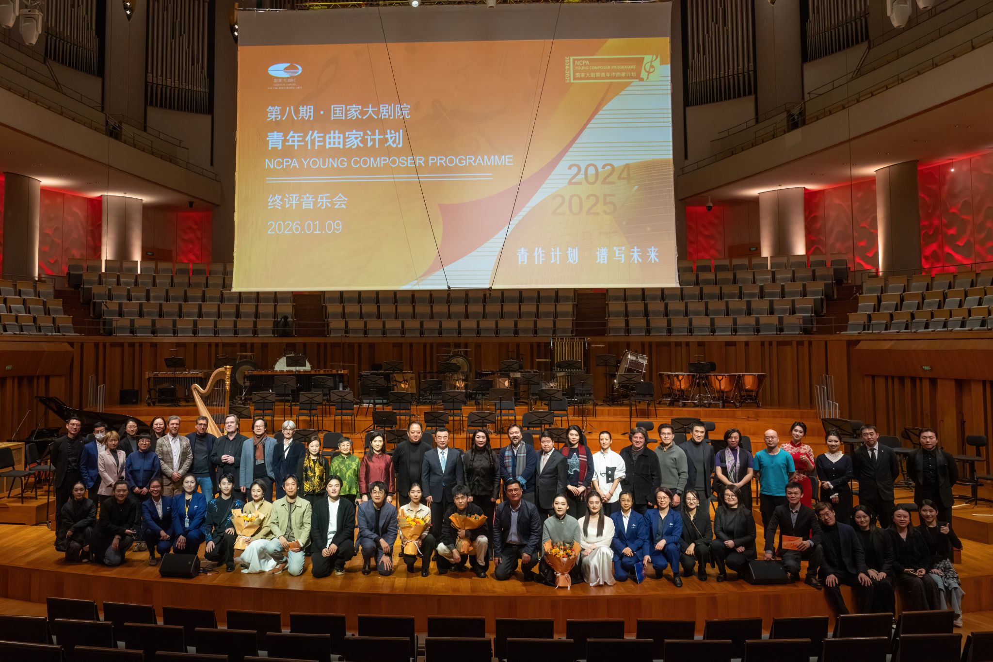 2026年1月9日晚,第八期国家大剧院青年作曲家计划终评音乐会圆满举办。第八期“青作计划”于2024年5月启动,受到海内外十余个国家和地区青年作曲家广泛关注,共征集到作品62部。历时一年半的预评、初评、系列展演与复评的多轮遴选,我校作曲系硕士三年级学生李子傲(指导教师:叶小纲教授)作品《韵神》、博士生余忠元(指导教师:郭文景教授)、硕士三年级学生冯子慧(指导教师:陈欣若教授)作品《哭笑鸟》、蒲天(美国新英格兰音乐学院)作品《与子瞻同游》、阿拉坦茂尼(上海音乐学院)作品《忆雪原》入围终评(按演出顺序排序),五部作品的实况录音将由国家大剧院音乐厂牌NCPA Classics出版发行。