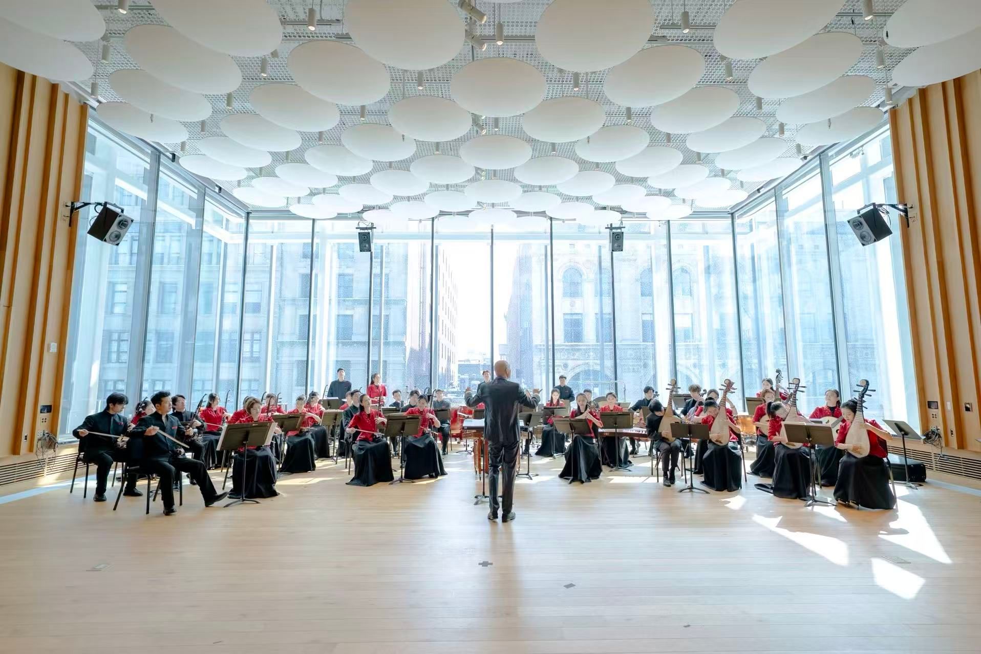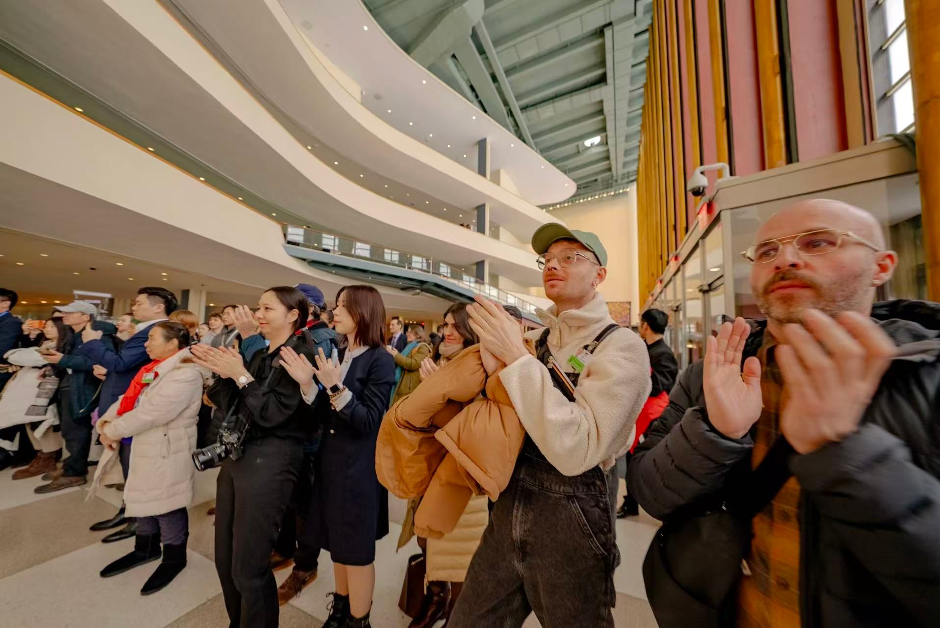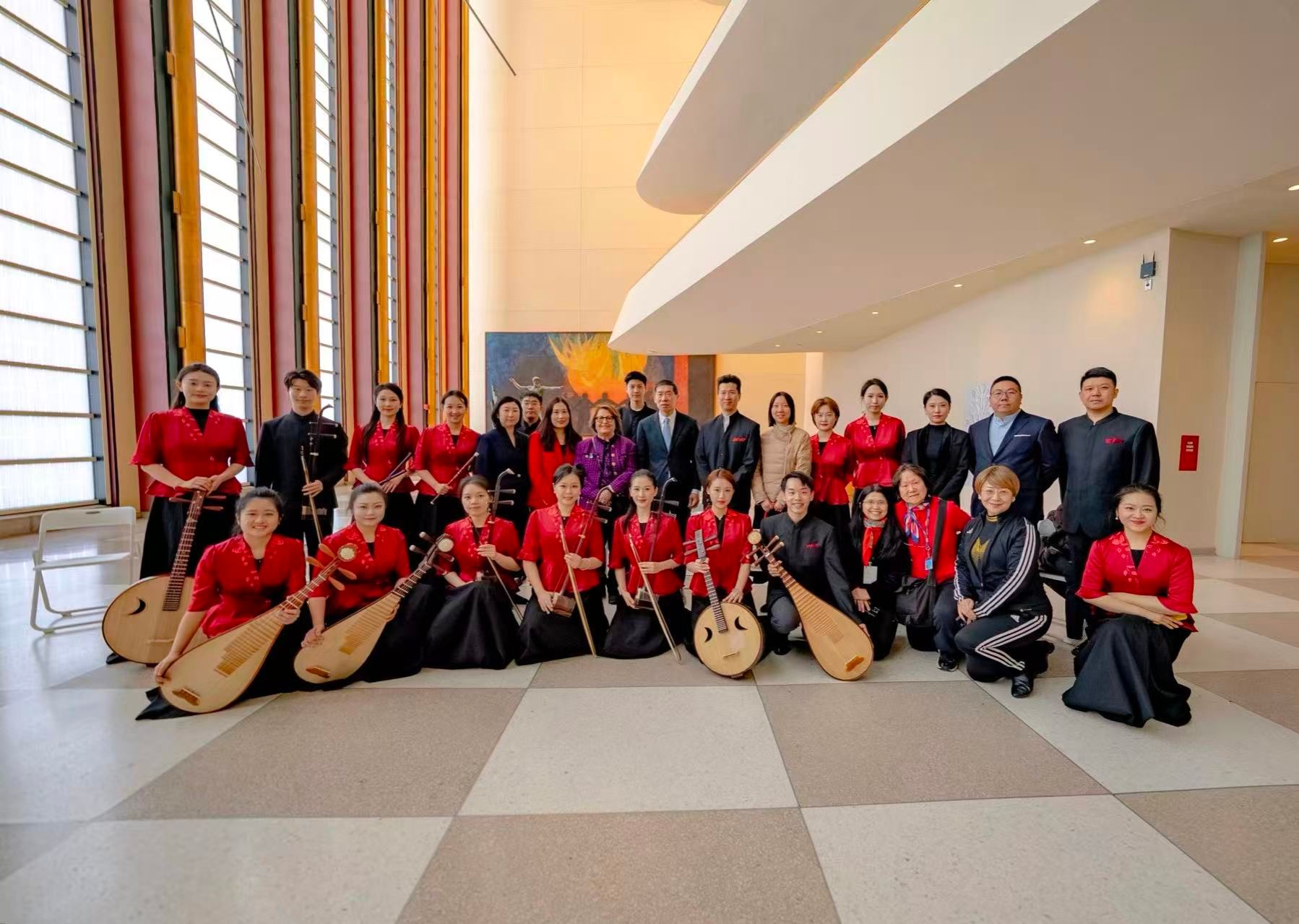作为系列交流活动中的亮点,2月25日中午,17位中央音乐学院演奏家在纽约联合国总部大厅举行了一场充满新春气氛的民乐“快闪”音乐会。《喜相逢》《彝族舞曲》《良宵》《赛马》《花好月圆》等经典曲目,以其独特的韵味吸引了各国外交官、联合国工作人员及游客驻足欣赏。