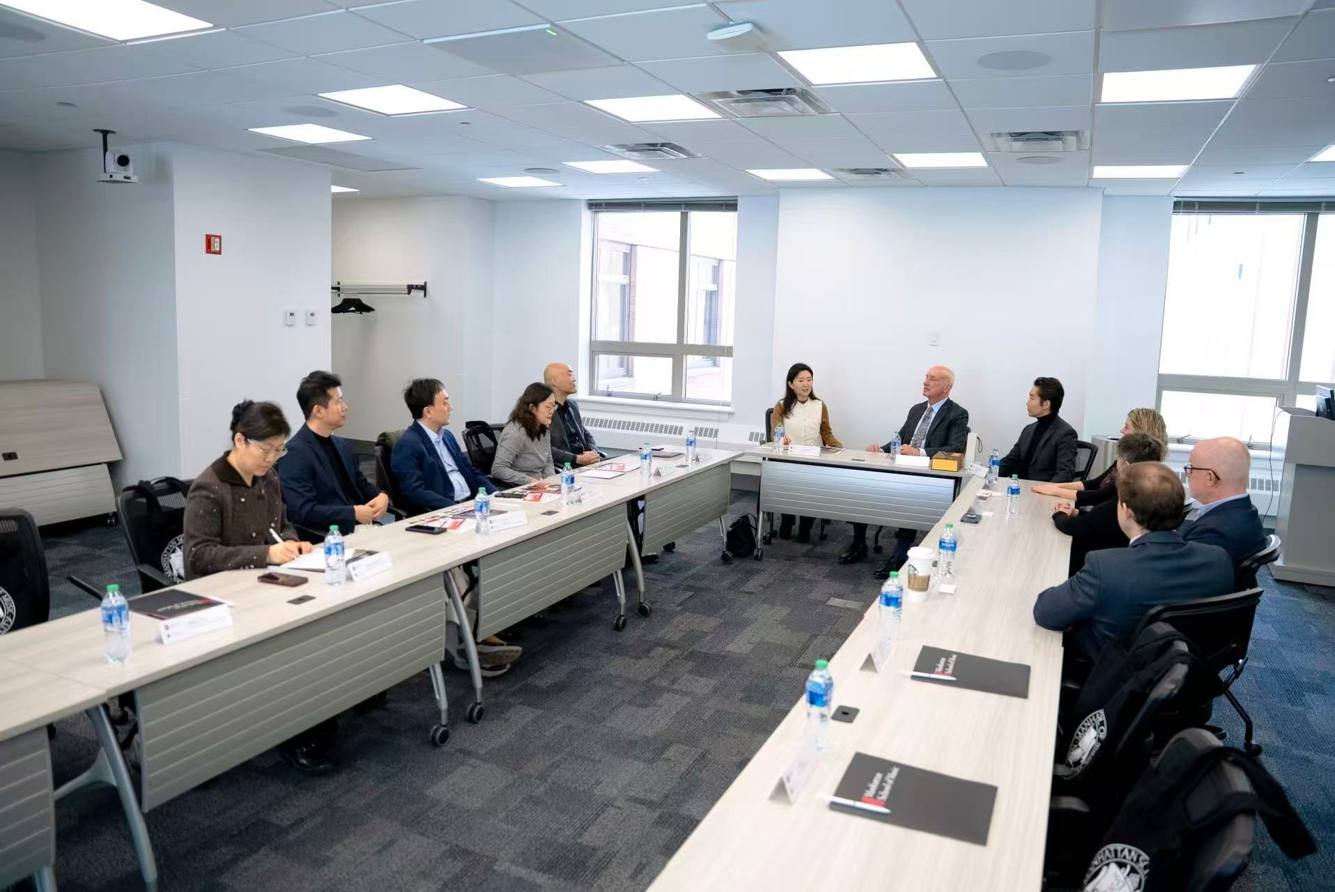 2月26日上午,在于红梅院长率领下代表团一行访问了以专业音乐教育著称的曼哈顿音乐学院。曼哈顿音乐学院院长James Gandre、高级副院长兼教务长Joyce Griggs、声乐艺术学院院长Carleen Graham、器乐与管弦乐表演学院院长JT Kane、小提琴教师及中央音乐学院校友王霄、院长办公室主任Devon Kelly等核心管理人员与资深教授参与了交流。