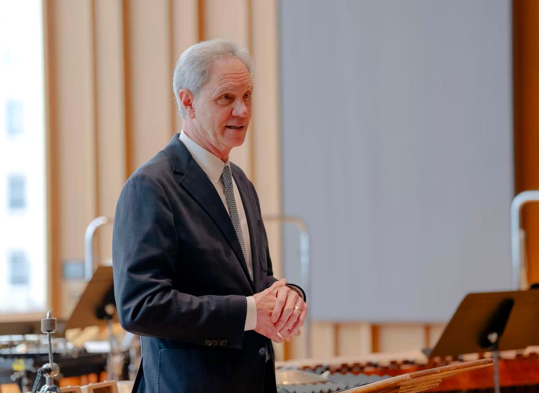 Knott院长在致辞中阐述了音乐在文明对话中的重要作用。他指出,音乐是文化表达、社会记忆与文明互鉴的核心载体,富有生命力的艺术创新源于不同文化传统间的真诚交流。他特别提到,二胡与小提琴、古筝与钢琴、中国音乐与西方和声体系并非对立,而是能够彼此激发、共创美好的伙伴。这番论述为交流奠定了平等互鉴、寻求共鸣的基调。