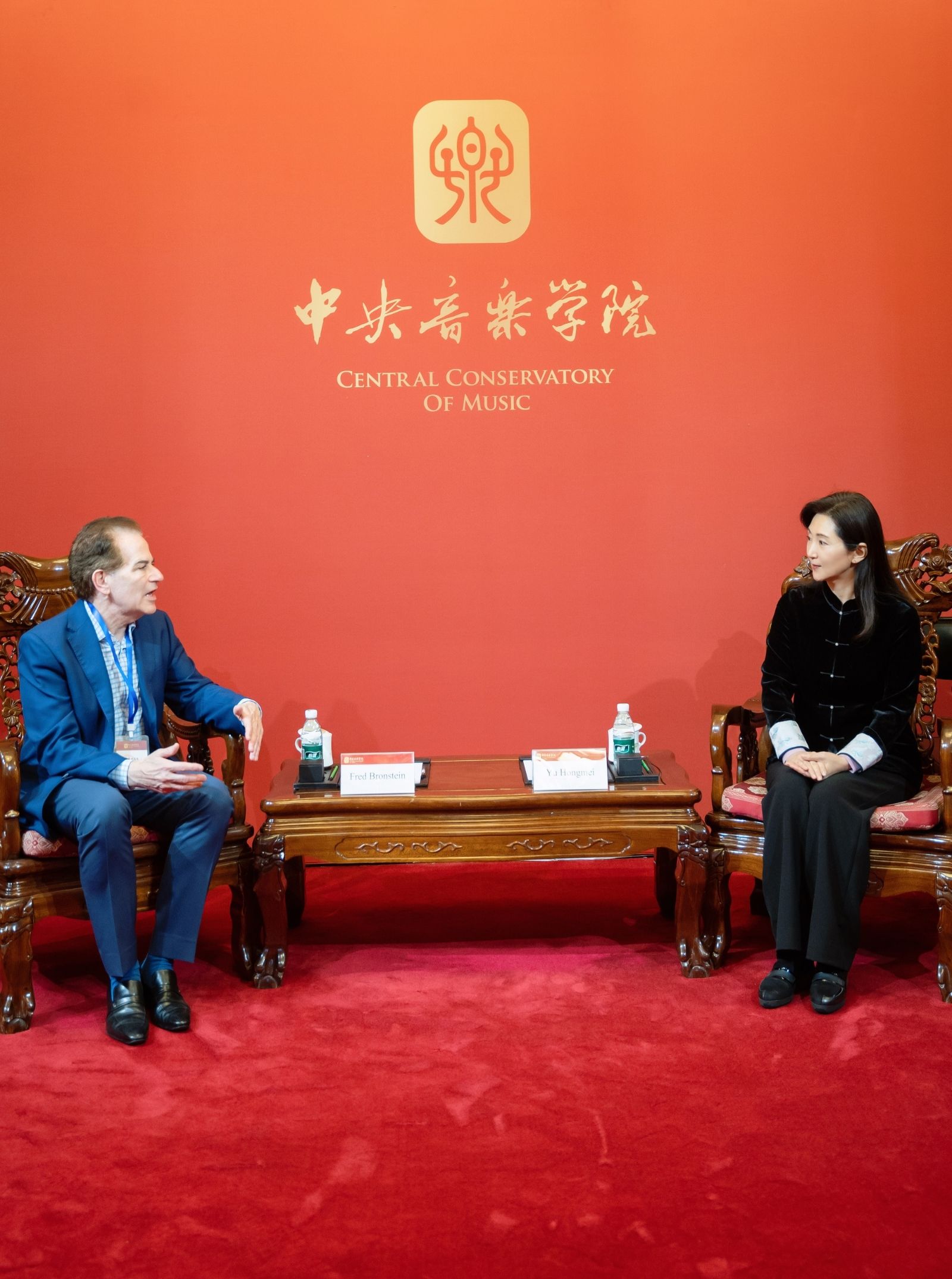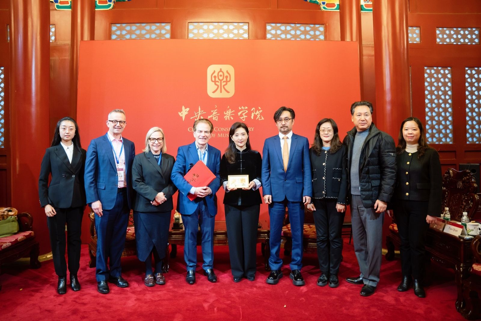 于红梅首先简要介绍了我院的发展概况。她指出,我院学生自附中阶段就打下坚实专业基础,毕业生广泛活跃于国内外重要音乐院校和各大艺术机构。她强调,中央音乐学院始终秉持守正创新、开放包容的办学理念,扎根中华优秀传统文化,积极拓展国际交流。学院希望培养的音乐人才能够与国际杰出音乐家并肩前行。中国民族音乐历史悠久,而作为国内民乐教育的领军院校,我院一直致力于推动中国民乐走向世界,增进国际认知与欣赏。目前,民乐系与管弦系教学成果显著,作曲系也注重中西乐器融合的创作探索。于红梅还介绍了我校育人成果,学生王丽雅、梅第扬、曾韵等在国际赛事中屡获大奖,彰显了学校的办学实力。