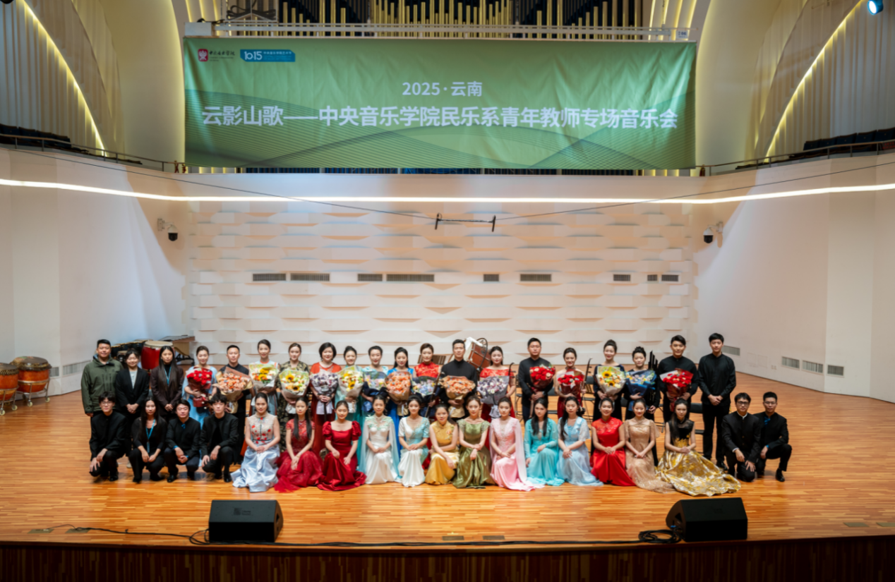 10月22日晚,云南大剧院音乐厅内灯火辉煌、座无虚席,第三届中国民族音乐传承周的“云影山歌”中央音乐学院青年教师专场音乐会在此圆满举行。一场汇聚中央音乐学院优秀青年民乐师资力量的音乐会,以学术性、艺术性与时代性的高度融合,向春城百姓交出一份民族音乐的多彩答卷。现场观众热情似火,沉浸在经典与现代交融的民乐盛宴中。舞台之上,中央音乐学院的优秀青年教师们,凭借精湛的技艺和深厚的艺术修养,以一场高水准演出为春城绘就了一幅兼具学术高度与文化温度的民族音乐长卷,生动诠释了中央音乐学院民族音乐青年演奏家的优秀风范与时代担当。