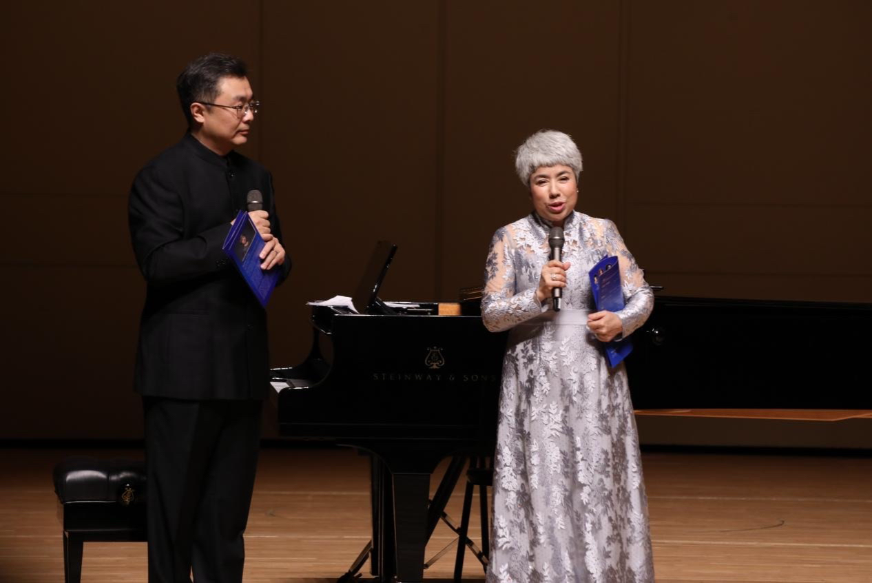 本场音乐会中,迪里拜尔教授与张佳林教授的倾情分享,深深打动了在座的听众——不仅深入浅出地解读曲集中的经典作品,更以幽默真挚的口吻,将《中国经典作品集》从编写到出版的点滴历程娓娓道来。那些藏在乐谱背后的创作故事、成书过程中的难忘细节,在他们的讲述中鲜活起来,既打破了艺术与听众的距离,更让听众在笑声与共鸣里,深切感受到艺术家对经典声乐作品的热爱与坚守。