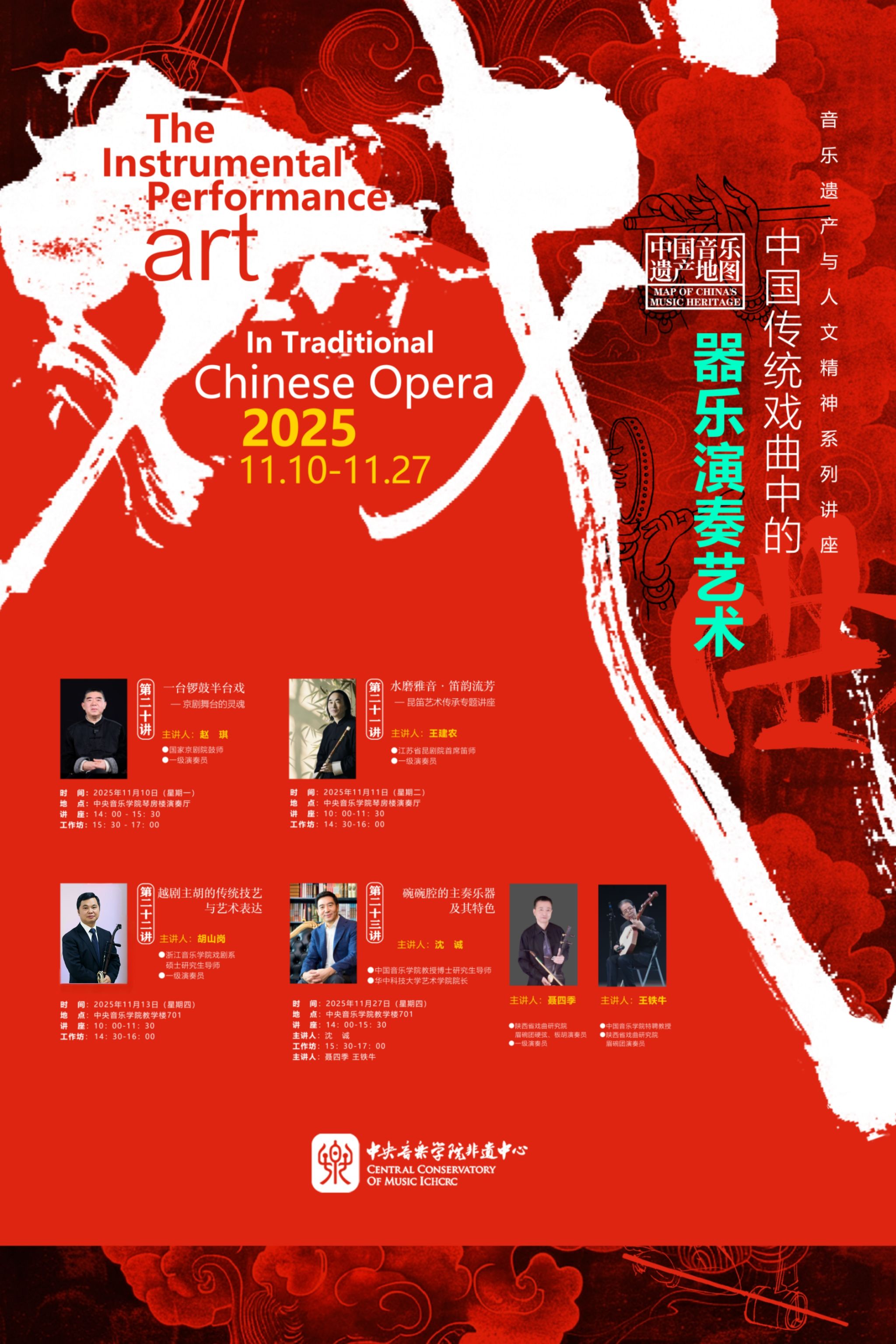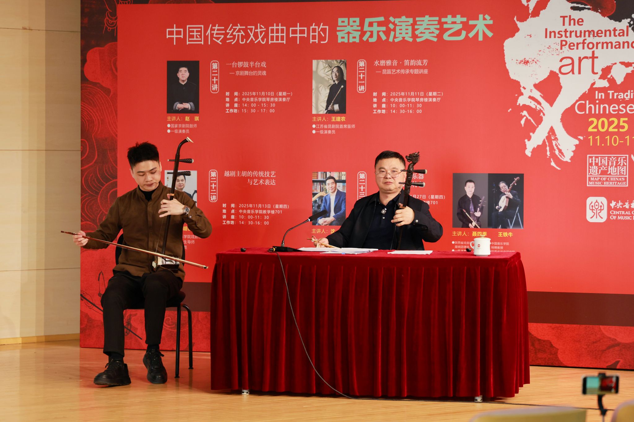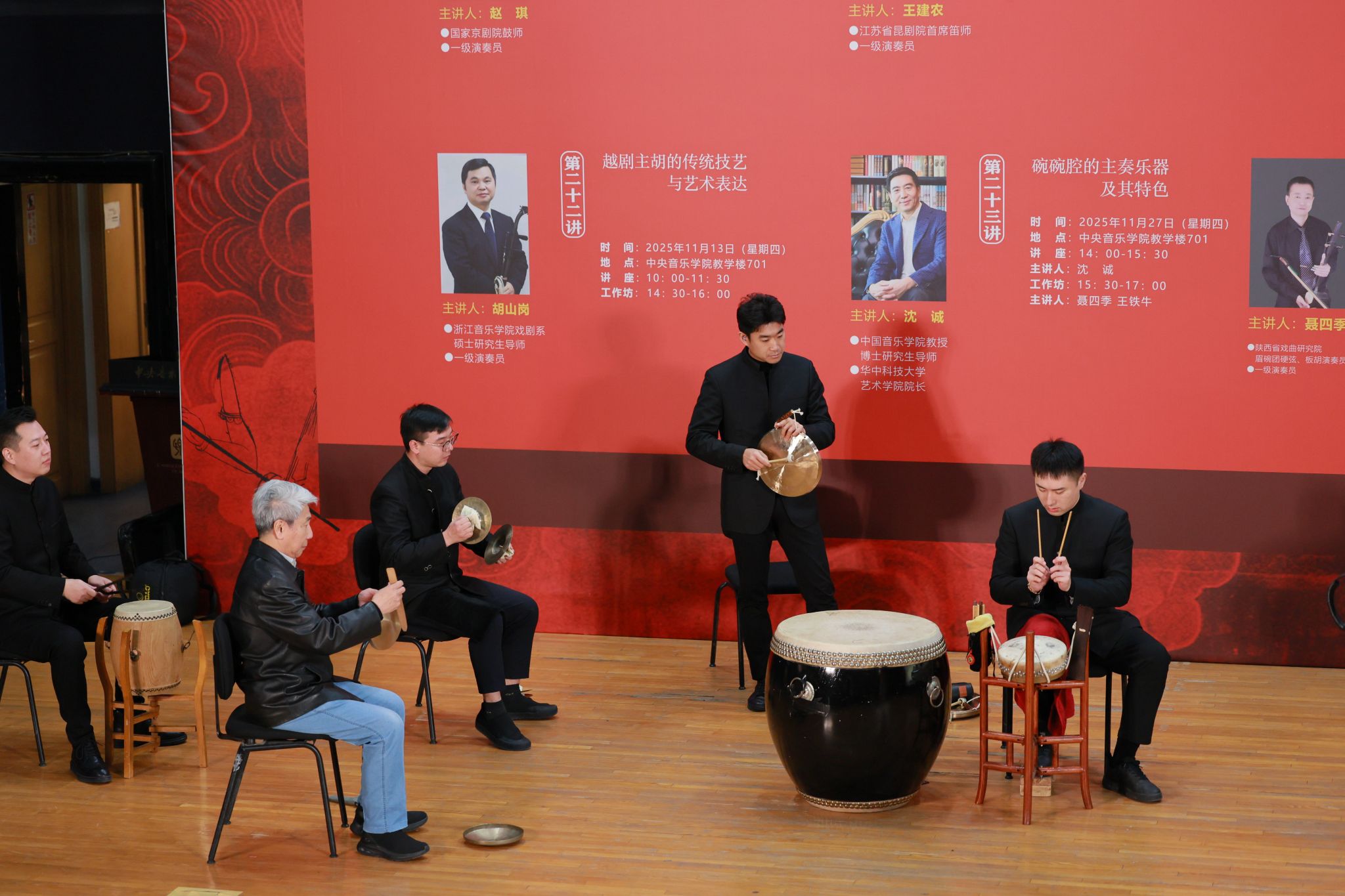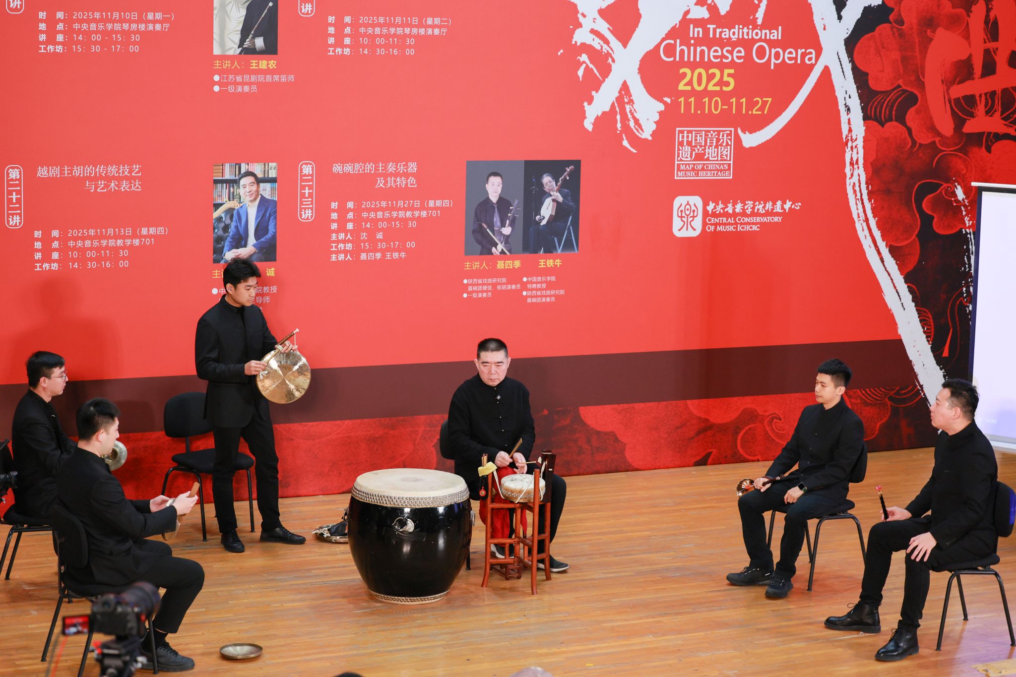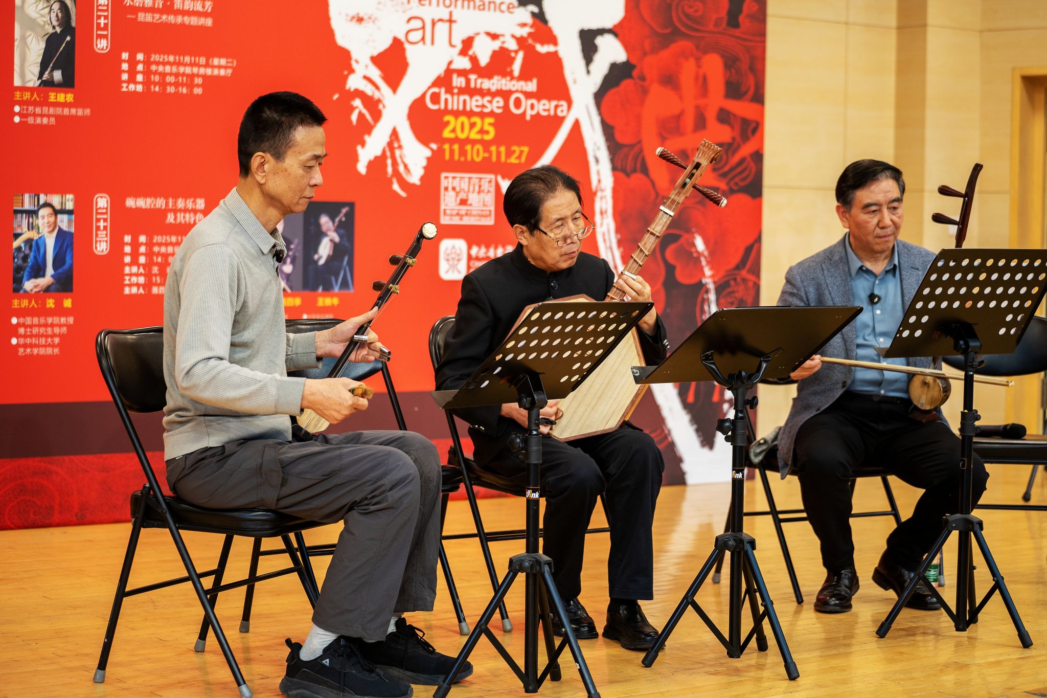 为深入贯彻“加强非物质文化遗产保护传承”的文化发展要求,推动传统戏曲器乐与高校音乐教育深度融合,中央音乐学院国家非物质文化遗产保护与研究中心于2025年11月成功举办“中国传统戏曲中的器乐演奏艺术”——音乐遗产与人文精神系列讲座与工作坊。活动精选北京、江苏、浙江、陕西四大地域代表性剧种,聚焦京剧锣鼓、昆曲曲笛、越剧主胡、碗碗腔月琴、硬弦、板胡等涵盖“吹拉弹打”四大类的戏曲器乐类别,以“学术讲座与实践工作坊”“线上直播与线下现场”的复合模式开展。中央音乐学院民乐系主任、“非遗”中心主任章红艳教授担任主持人,特邀业界顶尖艺术家现场分享与指导,为校内外专业院校师生、行业同仁及广大音乐爱好者搭建起跨群体、多层次的学习交流平台,助力传统音韵在专业音乐学府与更广泛的文化场域中焕发时代新声,为中华文脉赓续注入鲜活力量。