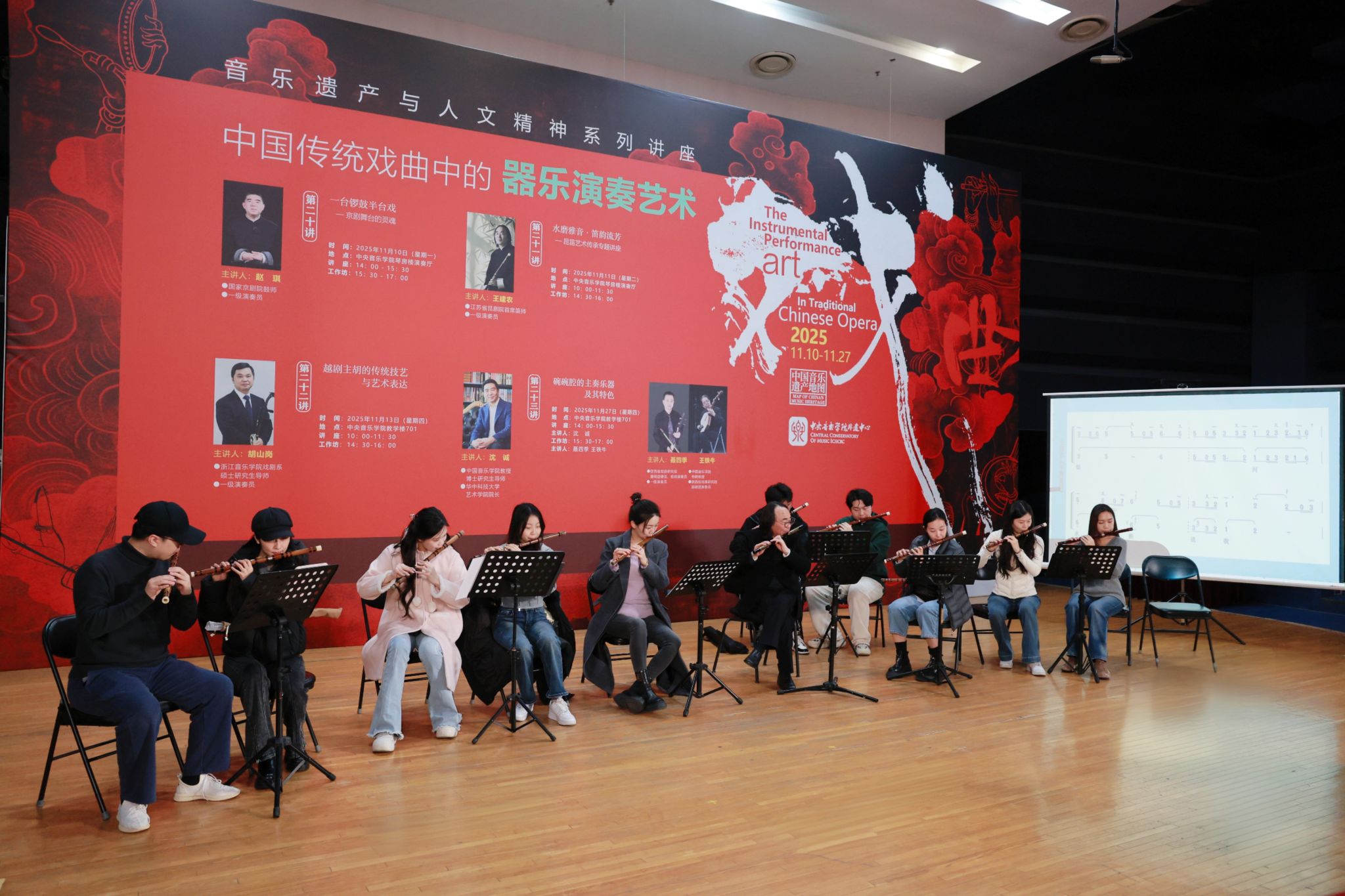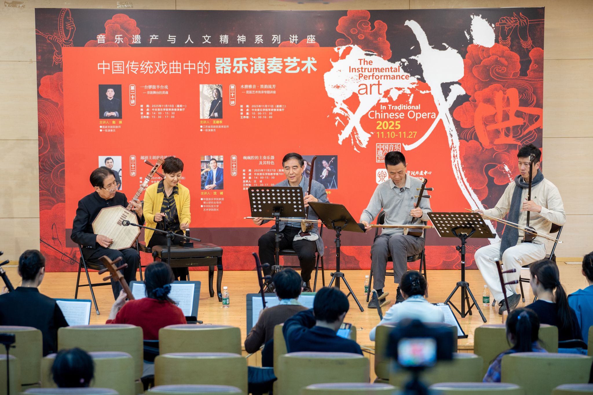 本次“中国传统戏曲中的器乐演奏艺术”——音乐遗产与人文精神系列讲座与工作坊,通过四大剧种器乐演奏的系统呈现,构建起“理论解构 + 实践落地”的非物质文化遗产传承闭环。活动吸引了中央音乐学院师生、校外专业院校同仁及广大音乐爱好者的共同参与,不仅丰富了参与者的传统艺术认知,助力大家跳出“单一乐器演奏”的局限,深刻理解“乐器与剧情、人物、情绪深度融合”的艺术逻辑,更为民乐演奏与创作提供了传统艺术体系中的关键理念与方法支撑,推动音乐类非物质文化遗产与专业音乐教育深度融合。