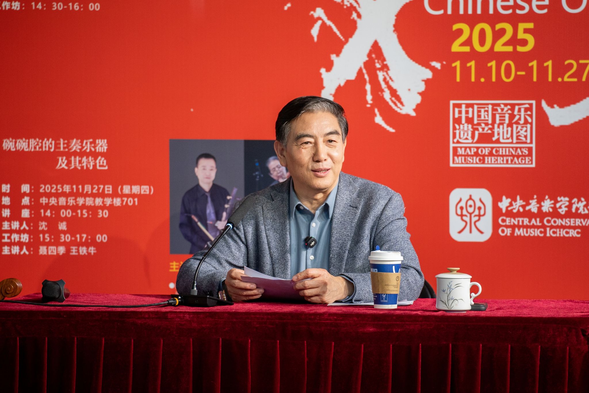 11月10日,系列讲座首场活动“一台锣鼓半台戏 ——京剧舞台灵魂”在琴房楼演奏厅举行,国家京剧院一级演奏员、著名京剧鼓师赵琪担任主讲。深耕京剧打击乐领域五十余年的赵琪以“锣鼓为魂”为核心,系统解构了京剧锣鼓艺术体系。他强调:“锣鼓并非单纯的‘节拍器’,而是为舞台行动确立时空属性与情绪基调的‘语法规则’,更是戏剧情感的‘听觉引擎’与表演结构的‘黏合剂’。”