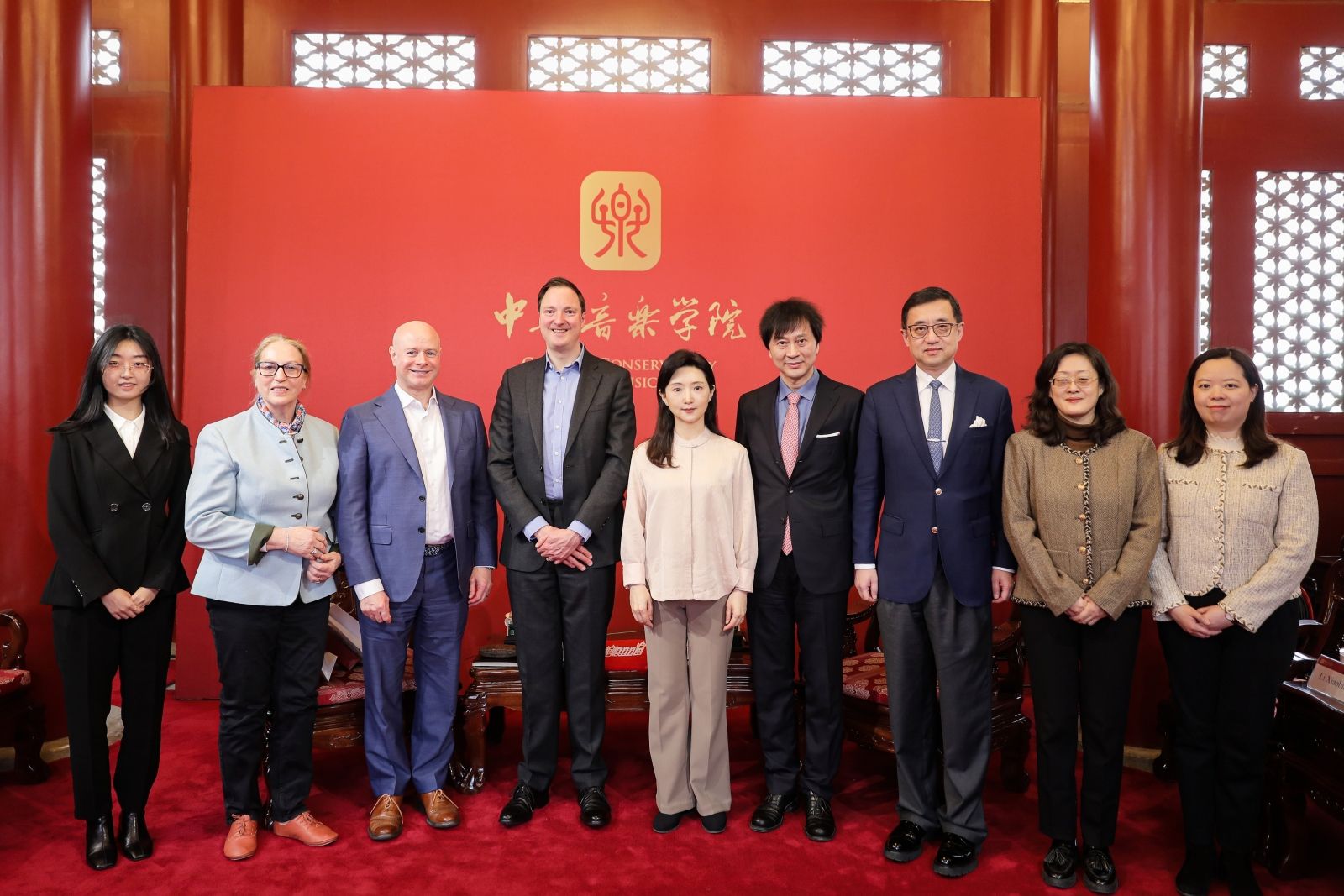 3月24日上午,英国皇家音乐学院代表团(Royal College of Music)一行来访我校。院长詹姆斯·威廉姆斯(James Williams)、副院长凯文·波特(Kevin Porter)以及钢琴系主任瓦内莎·拉塔奇(Vanessa Latarche)与我校于红梅院长、音乐人工智能与音乐信息科技系主任李小兵、钢琴系主任韦丹文、国际交流处处长陶倩等进行交流座谈。