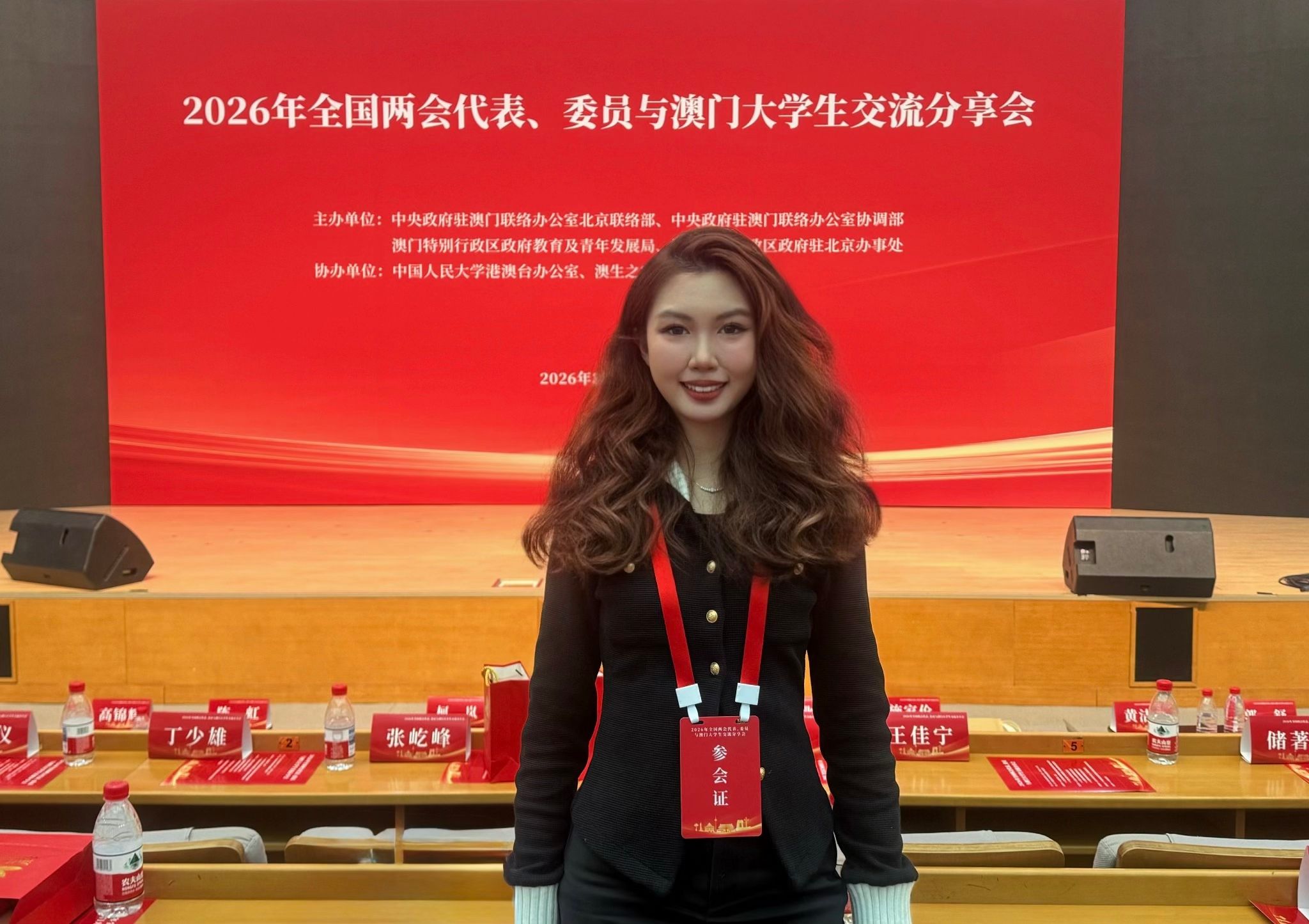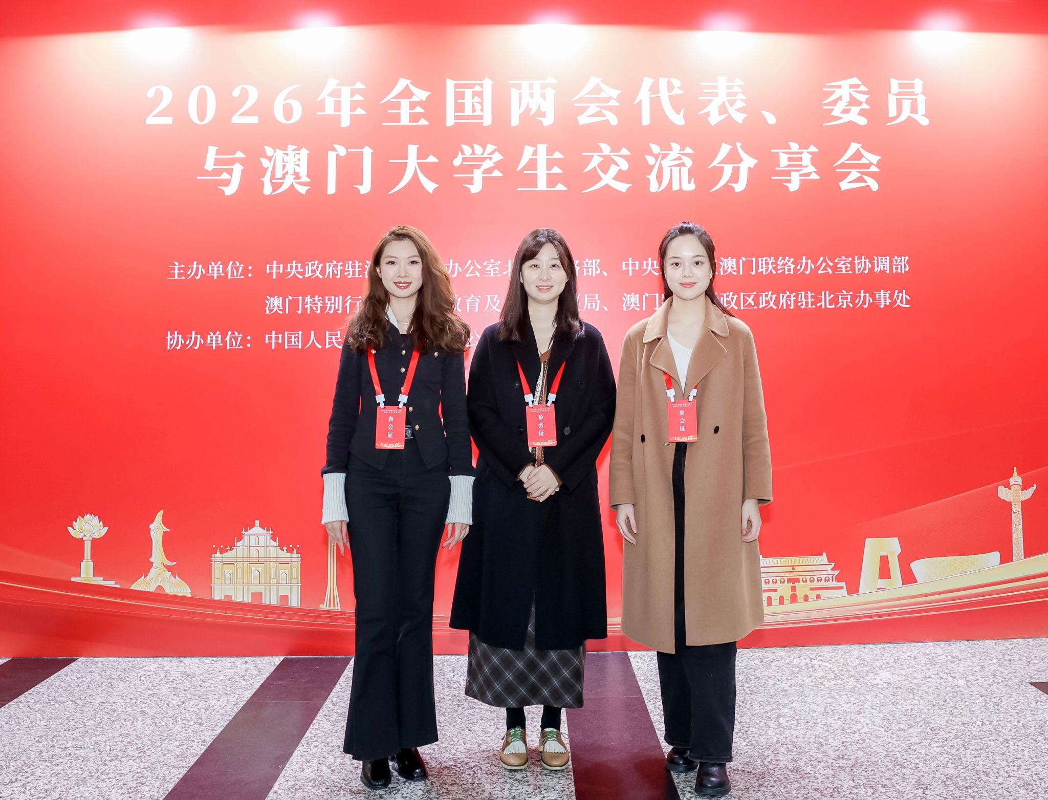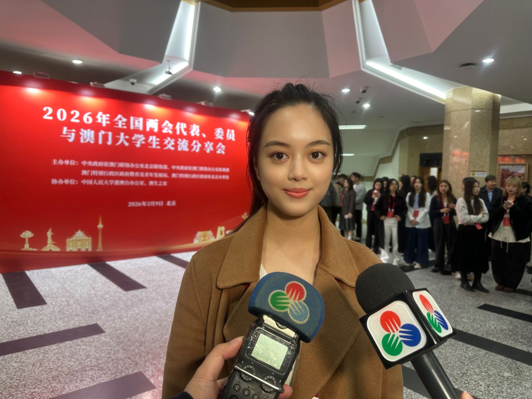 3月9日,应中央政府驻澳门联络办公室北京联络部邀请,我校澳门籍学生赵娉悦、郑心悦及班主任韩飞雪副教授参加了在中国人民大学逸夫会堂举办的“2026全国两会代表、委员与澳门大学生交流分享会”。