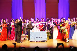 应该说,当晚参加演出的60多名学生仅仅是郭淑珍教授数百名学生中的代表,他们以独唱、重唱、合唱等形式演唱的30多首声乐作品(艺术歌曲、歌剧选段和片段),显示出了郭淑珍声乐教学的高标准、高质量。而时长近4个小时的演出,让观众们依然感到意犹未尽,这也体现了郭淑珍教授在声乐界同行以及社会大众心中是多么的德高望重。音乐会中有几个环节给观众们留下深刻印象:一是由郭淑珍教授本科在校学生演唱的小合唱《老师,我总是想起你》,朴实无华的歌词,抒情温婉的旋律,真情满怀的演唱,表达了学生们对老师无限的爱戴与敬意,台上台下,歌声与心声水乳交融。二是我院歌剧中心同学表演的柴可夫斯基歌剧《伊奥兰塔》片段。早年在俄罗斯留学时曾主演过歌剧的郭淑珍,一直有着一个浓得化不开的歌剧情结。2004年她创建了中央音乐学院歌剧中心,迄今已成功用原文排演了《莱托的仁慈》《茶花女》《魔笛》《蝴蝶夫人》《奥涅金》《阿依达》六部歌剧,培养出了众多年轻歌剧人才,产生了广泛而良好的社会影响。《伊奥兰塔》是她近期为学生排演的又一部新戏,通过排练和演出,同学们的声乐技巧和舞台表演能力都得到了很大的提升。最让观众深受感动的是音乐会最后一个节目,郭淑珍教授和爱徒王秀芬共同以公开课的方式讲解和演唱《黄河怨》。郭淑珍教授短短几分钟的讲解和示范,让观众们再一次感受到了艺术大家的学识修养和人格魅力,而王秀芬教授的倾情演唱也使这种艺术经典与艺术精神得以很好地传承和弘扬。