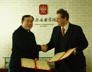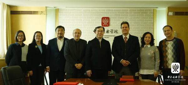 2017年11月14日上午,意大利罗马圣切契利亚音乐学院院长Giuliani Roberto教授与中央音乐学院院长俞峰教授于第一会议室举行了校际交流合作协议续签仪式。出席仪式的还包括意大利罗马圣切契利亚音乐学院副院长Ciampi Marizio教授、声乐歌剧系主任张立萍教授、研究生部主任柯扬老师、国际交流处副处长陶倩女士。
