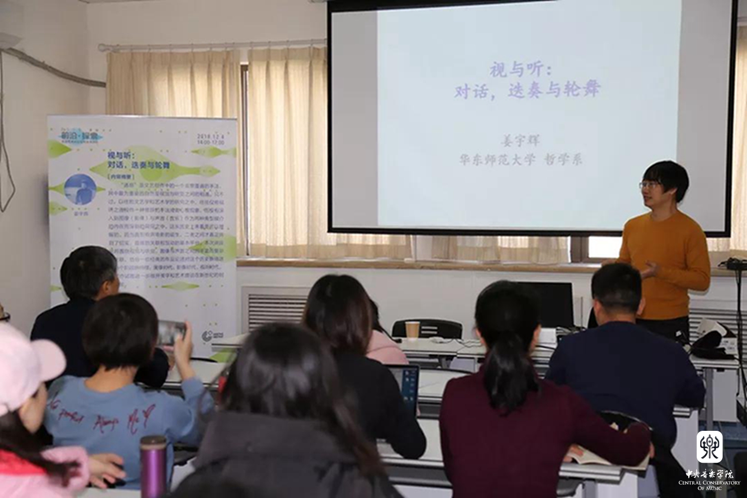 此次论坛中涉及美学、哲学的讲座亦同样引起了与会者的关注。宋瑾教授主讲的《阐释音乐的三种语言:异质性,近质性与同质性》,用严谨的逻辑和生动活泼的举例说明,将原本在音乐美学当中难以言说的、深奥晦涩的审美问题层层剖析,对音乐学其他学科的研究也有较重要的启发。而姜宇辉教授主讲的《视与听:对话,迭奏与轮舞》,围绕视觉与听觉、图像与声音之间的丰富而复杂的关联,结合经典的作品梳理历史脉络,并寄希望于进一步敞开美学和艺术理论在新世纪的创生可能。