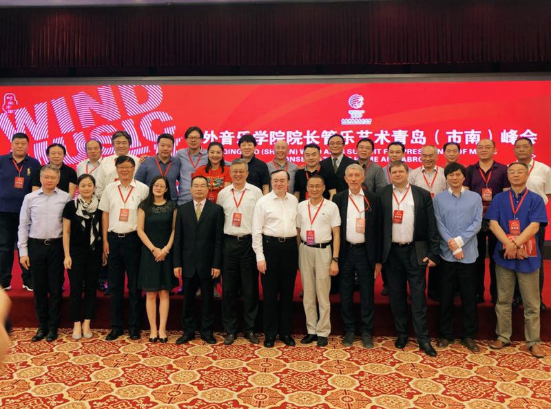 7月20日,历史悠久的青岛人民会堂内座无虚席,2019青岛•市南管乐艺术周开幕式在此隆重举行。青岛市委常委、市委秘书长祝华,中央音乐学院院长俞峰,青岛市市南区区委书记华玉松、区长高健,中国音乐家协会管乐学会主席于海,以及广州星海音乐学院院长蔡乔中、天津音乐学院院长徐昌俊、俄罗斯圣彼得堡音乐学院院长阿列克谢.瓦里西、泰国玛希隆大学音乐学院院长庞那荣、德国汉堡音乐与戏剧学院院长埃尔玛·兰普森、澳大利亚阿德雷德大学埃尔德音乐学院行政副院长史蒂芬·威廷顿和来自国内外的管乐界专家、音乐学员1000余人出席,并共同见证了“中央音乐学院青岛国际音乐中心”的揭牌仪式。我校音乐人工智能与音乐信息科技系主任李小兵、提琴制作研究中心副主任高彤彤、国际交流处处长陶倩、院长办公室主任王歆和管弦系副主任李岚松一同出席活动。