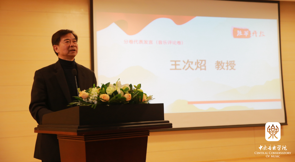 音乐评论卷主编王次炤教授在发言中说道,改革开放40年来,中央音乐学院在学术研究和学科建设上取得了巨大的成就。例如,历年的全国文艺评论音乐类获奖文章几乎全为中央音乐学院的教师和校友包揽。他提出,在音乐评论领域中,我们取得了巨大的成就,但要继续发展下去,就需要年轻学者更多的参与,而《文萃》的出版也将对音乐的学术研究,特别是在音乐评论方面起到重要的推动作用。