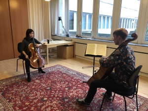 丹麦皇家音乐学院和我校是友好院校,近年陆续有多位我校大提琴专业学生去该院交流学习。在此次讲学活动中,马雯教授就这些交换生的学习情况进行了详细了解,并向丹方表达了欢迎该院学生来我校交流学习的意愿,同时还赠予他们一些中国大提琴作品乐谱。该院大提琴教授Morten Zeuthen 表示非常感谢马雯教授此次的讲学,他们的学生受益匪浅,并欢迎她再次访丹进行讲学交流活动。