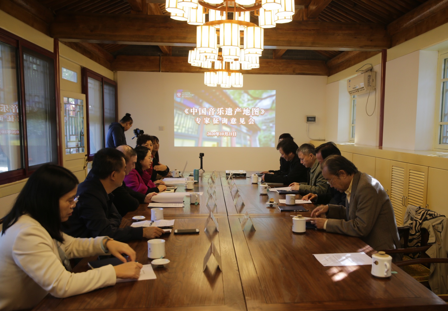 2020年10月21日上午,《中国音乐遗产地图》项目专家征询意见会在中央音乐学院国家非物质文化遗产保护与研究中心王府小院顺利召开。本次会议旨在邀请校内外相关专家、学者对项目的可行性、科学性等方面进行意见征询。参加会议的专家、学者有原文化部副部长王文章先生、非物质文化遗产保护专家田青先生、文化和旅游部民族民间文艺发展中心兰静主任、武汉音乐学院李幼平副院长以及中央音乐学院俞峰院长、肖学俊副院长、苗建华副书记、章红艳教授、章华英教授等。大家齐聚在具有百年历史的醇亲王府小院中,探讨中国非遗音乐的未来之路。古香古色的王府小院成为非遗音乐保护中心所在地,这也为本次会议平添一份独特的历史感。