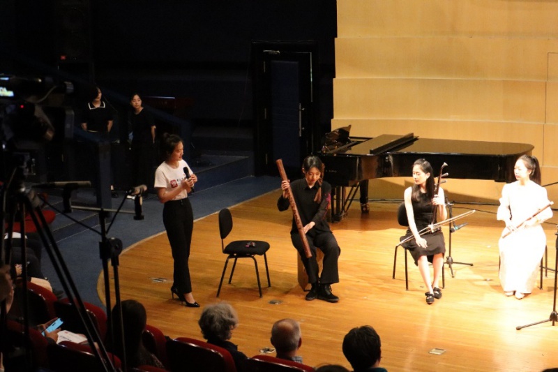音乐会开场,主讲人米炫晔简要回顾了在中国共产党的领导下我国与拉丁美洲国家的外交历程及文化渊源,并邀请陈自明教授介绍了我校音乐学系世界民族音乐教研室关于拉丁美洲音乐研究的相关成就。陈教授从拉丁美洲音乐文化的宏观特征及已有的拉丁美洲学术成果两方面出发,指出中国音乐与拉丁美洲音乐文化有着千丝万缕的亲缘关系。随后,音乐会正式开始,整场作品从三个层面展现出中国与世界、交流与融合的文化发展过程。