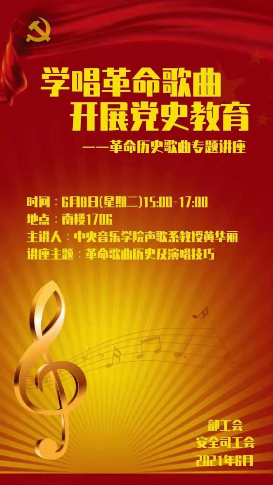 6月8日下午,我校声乐歌剧系黄华丽教授应外交部相关单位的邀请,作“革命历史歌曲”专题音乐党课。用歌声传承党史,用艺术砥砺精神,为中国共产党成立100周年献礼。外交部涉外安全事务司司长白天、外交部工会主席皮庆及相关司局同志出席。