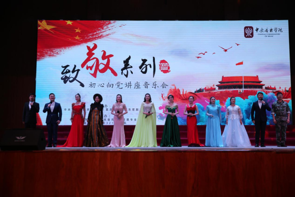 2021年6月6日,艺“述”百年——庆祝建党100周年研究生艺术实践“致敬”系列第二讲“初心向党”讲座音乐会在中国人民解放军32141部队举办,此次音乐会是中央音乐学院牵头和落实教育部音乐党史系列活动进军营系列展演之一。中央音乐学院党委副书记、纪委书记刘春梅,中央音乐学院音乐学系党总支书记吴晓萍,中央音乐学院研究生部主任刘琦、声乐歌剧系国家二级演员陈笠笠、音乐学系副教授段蕾、致敬系列指导教师艺术管理专业钱亿松等二十余名师生走进军营,与广大基层指战员一起,以经典民族声乐作品回顾百年党史,致敬伟大的中国人民解放军。