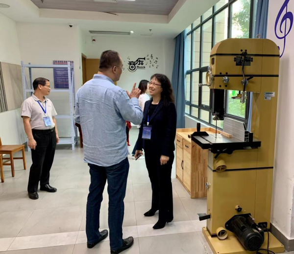 (左起) 郑金銮副校长、王绍武教授、李昕校长参观提琴制作专业工作室