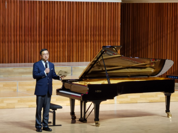 4月26日我校钢琴系主任韦丹文教授大师课在五缘音乐厅录播厅举办,韦丹文教授在听完高一年级王俊凯同学演奏的《李斯特第二叙事曲》后,轻松有趣地讲起李斯特这位当时的超级大明星的故事,他将恢弘庞大的作品,用通俗易懂而又风趣的语言清晰地诠释,学生得以迅速领悟。而在对高一年级詹绚同学的《贝多芬钢琴奏鸣曲Op.90》的指导中,不乏精致细腻,丝丝入扣。从具体某个音如何触键、两个音之间的交接、句子的走向、声音的对比、句子的问答、段落的乐队想象……在贝多芬的作品学习中,又该如何严谨地读谱,韦老师用了相当大的耐心,不断地引导。