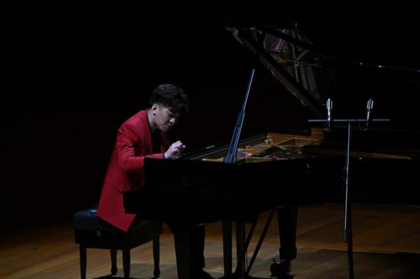 音乐会的开场是青年钢琴家黄若愚演奏的《牧童短笛》。这是中国第一首具有鲜明风格的民族钢琴曲,由贺绿汀创作。它是音乐家对中国田园文学传统的继承;是一首乱世中的宁静,淡雅的心灵之歌。这首作品为中国风钢琴曲创作树立了一个高标准的开端。在钢琴家的指尖下作品焕发了新的光彩:他独特的层次处理与音色变化令人倍感惊喜,生机勃勃的中段使我们仿佛看到了充满童真、活泼可爱的牧童,结尾处清新淡雅,令人舒畅惬意。