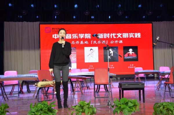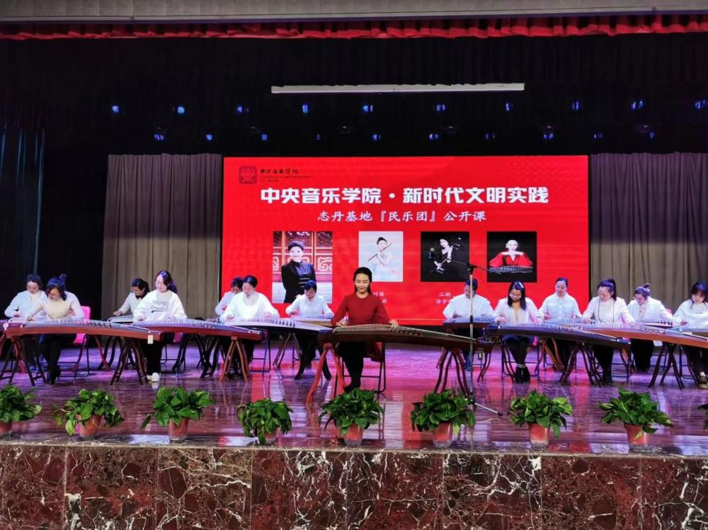 2021年,在春暖花开,朝气蓬勃的季节里,中央音乐学院指挥系党总支副书记、民族室内乐团指挥陈冰教授带领院长办公室干部王梓及中央音乐学院民族室内乐团笛子演奏员冯天石、胡琴演奏员徐梦鸽、柳琴演奏员李怡函,于3月31日再次来到了有着优良的红色基因,素有中国革命“红都”之称的志丹县,与中央音乐学院驻志丹新时代文明实践宣讲师李杨冠宇、丛榕、中央音乐学院音乐教育学院驻志丹支教实习生吴桐、周恺妮,在志丹县高级中学大礼堂为当地音乐教师、六百余名中小学生、及音乐爱好者讲授了一场以民族音乐文化为主的大型音乐公开课,当地教育局领导出席了活动。