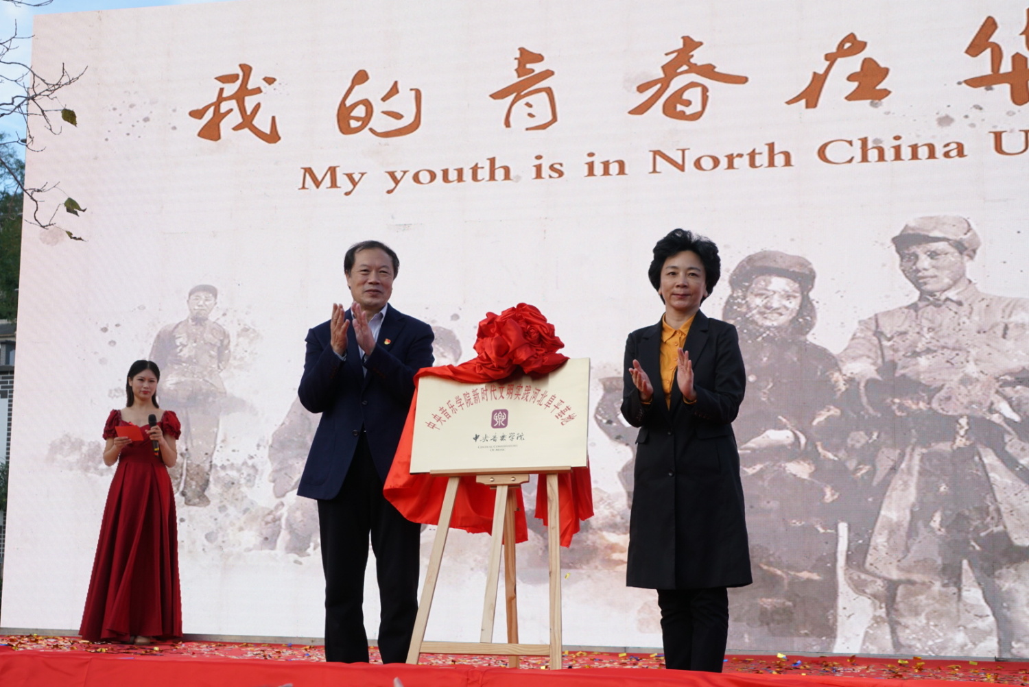 赵旻在致辞中表示,中央音乐学院新时代文明实践河北阜平基地在华北联合大学文化聚落揭牌,是对红色基因的延续,也是对阜平人民的文化回馈。作为重点打造的文化惠民项目,中央音乐学院将充分发挥文化、音乐优势,把更多的艺术、文化产品送到实践基地,用艺术服务人民,用音乐点亮梦想,切实把基地打造成为“讲好阜平故事、传递阜平声音”的重要窗口、干部群众学习习近平新时代中国特色社会主义思想的重要阵地。