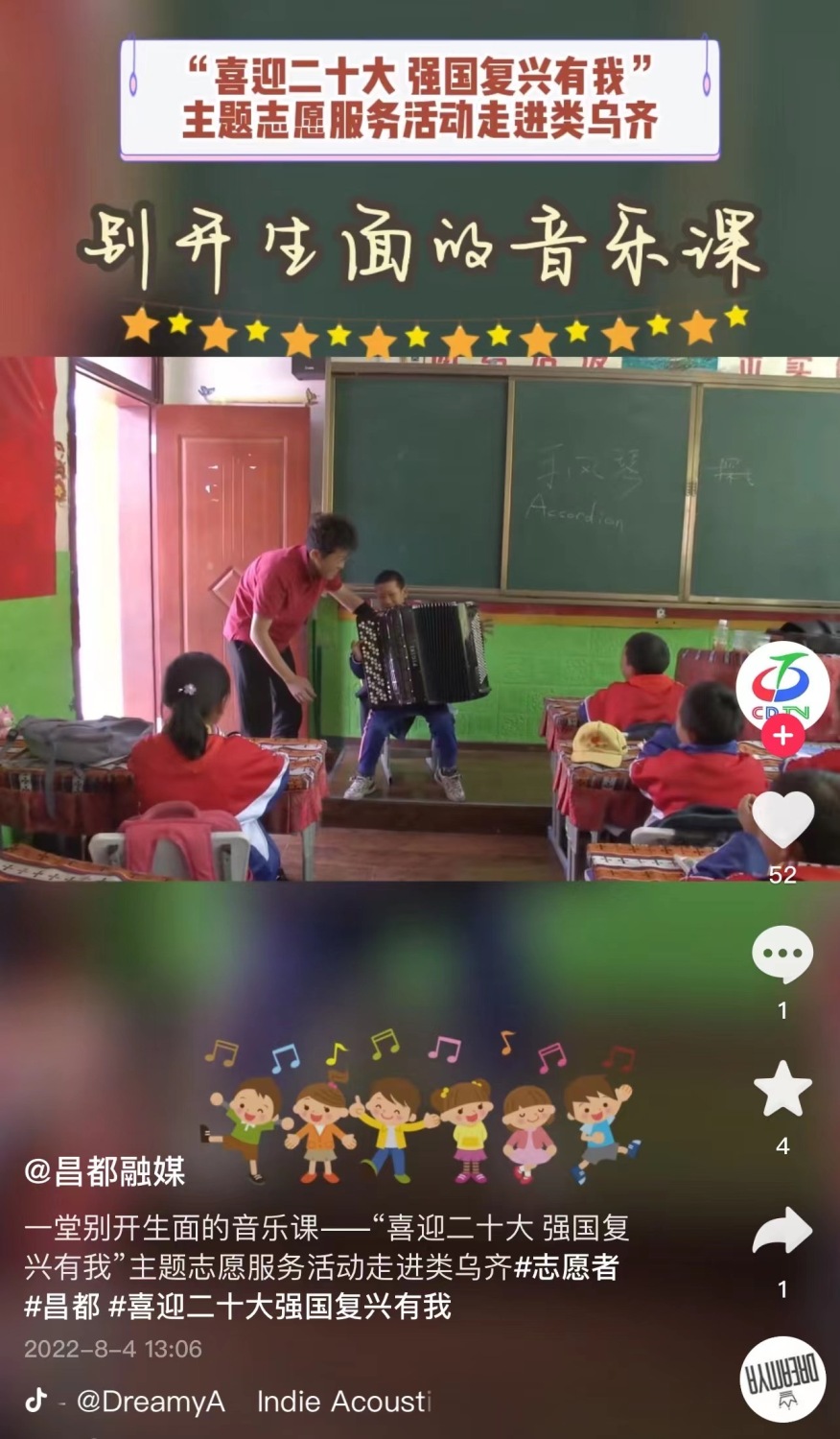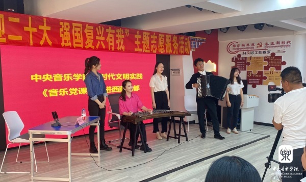 8月1日,“喜迎二十大 强国复兴有我”主题志愿服务活动“永远跟党走”志愿服务团到达昌都,开启西藏志愿服务活动第三站。中央音乐学院文艺宣讲师团队和学校的优秀师资,联合中央美术学院、北京舞蹈学院的优秀师生深入昌都基层开展新时代文明实践活动,走进当地社区、学校以及文艺团体,给当地人民群众带去丰富多彩的艺术体验,为昌都市艺术教育发展赋能。
