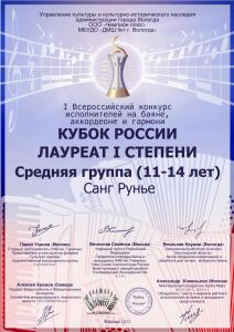 “俄罗斯杯”是俄罗斯手风琴协会、多所音乐院校及演奏家教师们共同举办的大型巴扬及手风琴赛事,由世界手风琴联盟协会、俄罗斯手风琴协会、俄罗斯莫斯科格涅辛国立音乐学院、沃洛格达市政府文化和历史文化遗产司和Trophée Mondial de l'Accordéon 国际手风琴比赛组织举办,已被列入俄罗斯每年重要顶尖赛事之一。