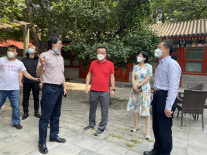 在图书馆,校领导与同学们亲切交流,逐一询问同学们院系与专业,关心同学们的学习、生活情况,叮嘱他们做好疫情防护,平安顺利度过端午假期。在基本伙食堂,查看了食堂环境及储备情况,并叮嘱相关负责人,一定要保证食品安全,同时要降低菜品价格并充实物资储备,让学生在学校安心、让家长放心。在近邻宝,详细了解了快递消杀、静置、入门等流程,强调要严格按照上级有关防疫要求进行消杀卸货,要保持高度警惕,确保校园安全。走访期间,校领导还对学校古建区用电安全、校园绿化情况进行强调,对住校值班的工作人员表示感谢,希望大家继续努力、共克时艰,坚决筑牢校园疫情防线。