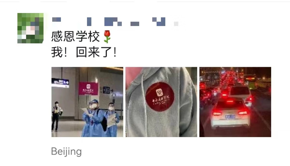从机场出来,一下子就看到了带着“中央音乐学院”的接站牌子,瞬间就感受到了满满的安全感。学校的老师们带着温暖的笑容,细心询问我们每个人的信息,带着我们每个人点对点到达大巴上。下了车之后,经过了学校精心设计的防护关卡,迅速且高效地把我们送到了宿舍。一路回来,看到了太多老师们忙碌的身影,为了所有同学的安全,老师们夜以继日,老师们,您们都辛苦啦!