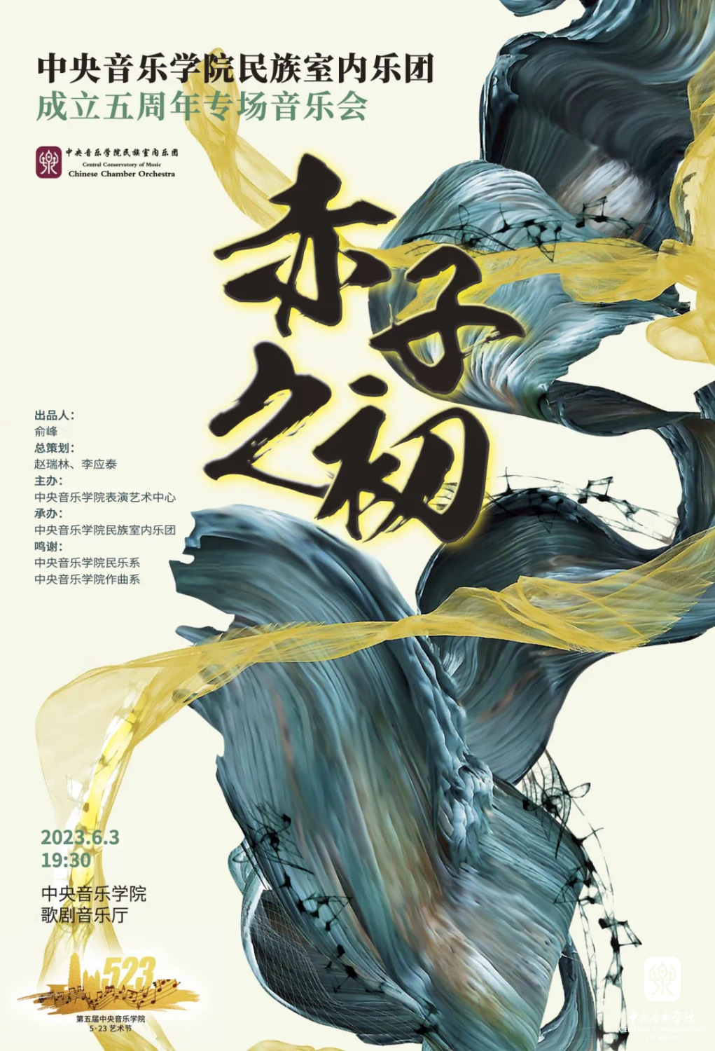 本场音乐会正值第五届中央音乐学院5·23艺术节期间,以“庆生” “汇报” “感谢” “展望”为主题,用音乐为人民抒怀,面向现代化、面向世界、面向未来,坚定文化自信,展现大国之音,响应习近平总书记“担负起新的文化使命,努力建设中华民族现代文明”的号召。