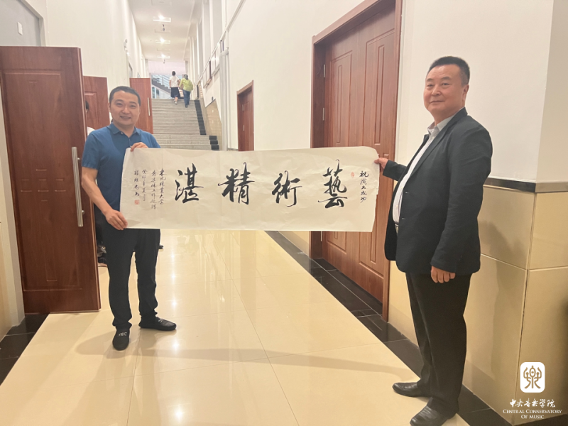 6月14日,中央音乐学院交响乐团走进东北林业大学学会会堂,林业大学党委副书记陈文慧,党委常委、副校长雒文虎与千余名师生一同观看演出。演出开始前,学校党委常委、副校长雒文虎和中央音乐学院表演艺术中心主任赵瑞林、演出实践管理中心主任李应泰以及指挥家、声乐歌剧系党委书记陈冰进行了亲切交流,对全体演职人员携高雅艺术来校演出表示感谢。演出结束后一位退休老教授托人送上一幅自己手写的书法:“艺术精湛”。