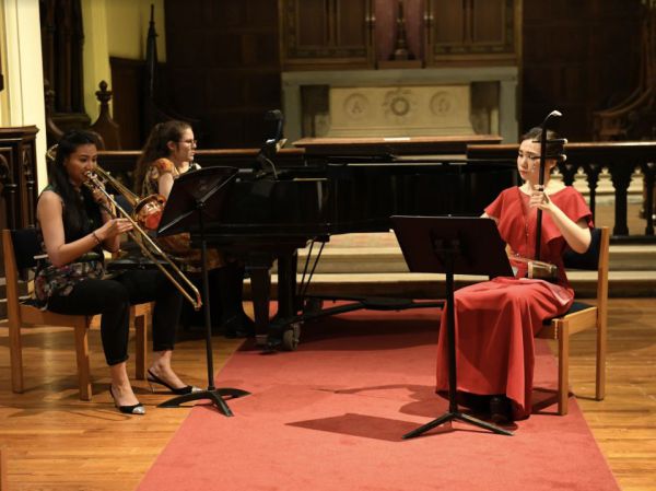 ▷美中音乐研习院学生有众多表演机会,并常能与西方乐器相互切磋有无,进行合作。