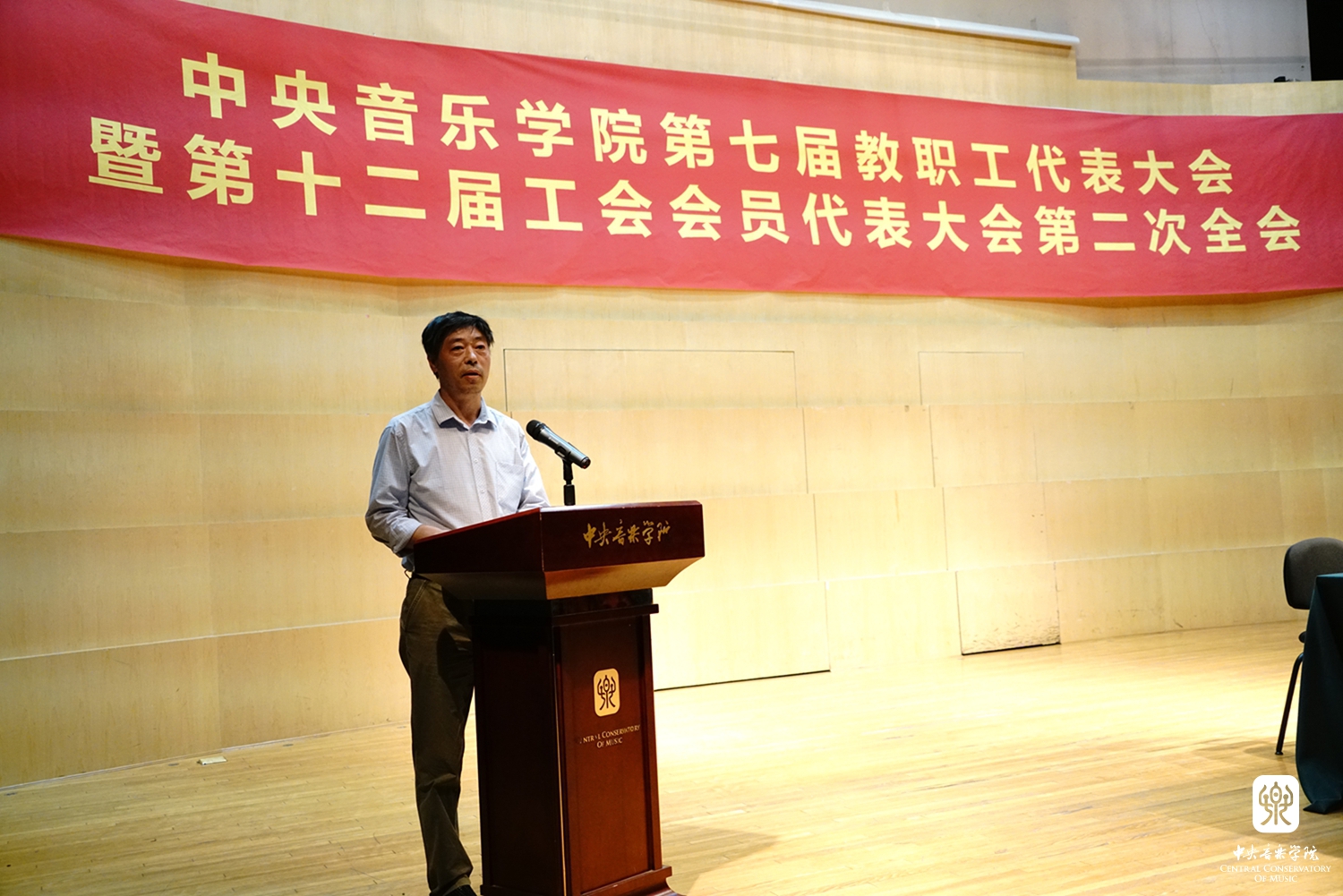 2017年5月26日,我院第七届教职工代表大会暨第十二届工会会员代表大会第二次全会在我院演奏厅隆重举行。我院全体教职工代表、列席代表和特邀代表出席大会。工会副主席李昕主持大会。