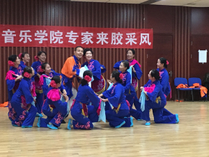 12月9日下午,师生们观看了传统文艺节目展演,如胶州秧歌、茂腔等具有胶东地区特色的音乐剧种。胶州秧歌是胶州民间的一种舞蹈艺术形式,以“男刚女柔、螺旋摆动,三弯九动十八态”的独特艺术魅力著称于世,被人们称为“三道弯”、“扭断腰”;茂腔是胶东半岛的传统戏曲形式,素有“胶东之花”的美誉;此外,胶东地区还有八角鼓(由北京“旗人”八角鼓蜕变而来)、民歌、吹打乐等传统文艺形式。演出结束后,师生与文艺工作者们就传统民间艺术的传承与发展、民间艺术如何适应新时代的发展趋势等问题进行座谈交流。