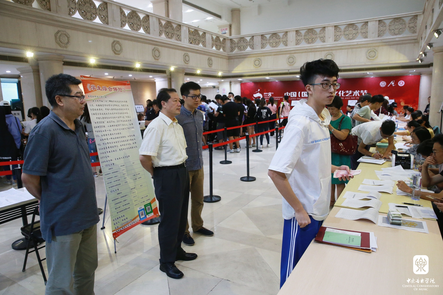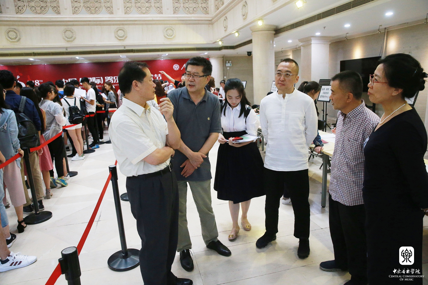 2018年9月6-7日,在这天高云淡、秋高气爽的季节,中央音乐学院迎来了2018届新生。6日下午,学校领导党委书记赵旻、副院长肖学俊、党委副书记刘春梅在党委办公室、教务处、学生处、校园管理处等负责人的陪同下来到琴房楼友谊厅,看望新同学和正在紧张接待新生报到的学校各部门教职员工及志愿者。