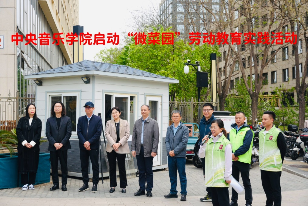 2025年4月8日,东校区学生活动中心楼前中央音乐学院“央音微菜园”劳动教育实践活动正式启动。学校主管校长、西城区委组织部副部长、西城区园林局副局长等领导共同参与和支持学校的劳动教育实践工作,活动旨在以劳动实践为抓手,激发同学们的劳动热情,丰富学生的校园生活,探索劳动教育与美育浸润深度融合的生动实践,通过丰富学生们劳动实践教育的内容,扎实做好“五育并举”的工作。